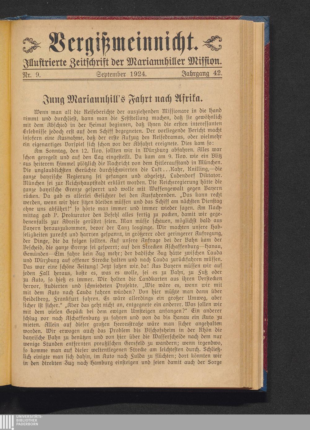 Jung Mariannhill's Fahrt nach Afrika.