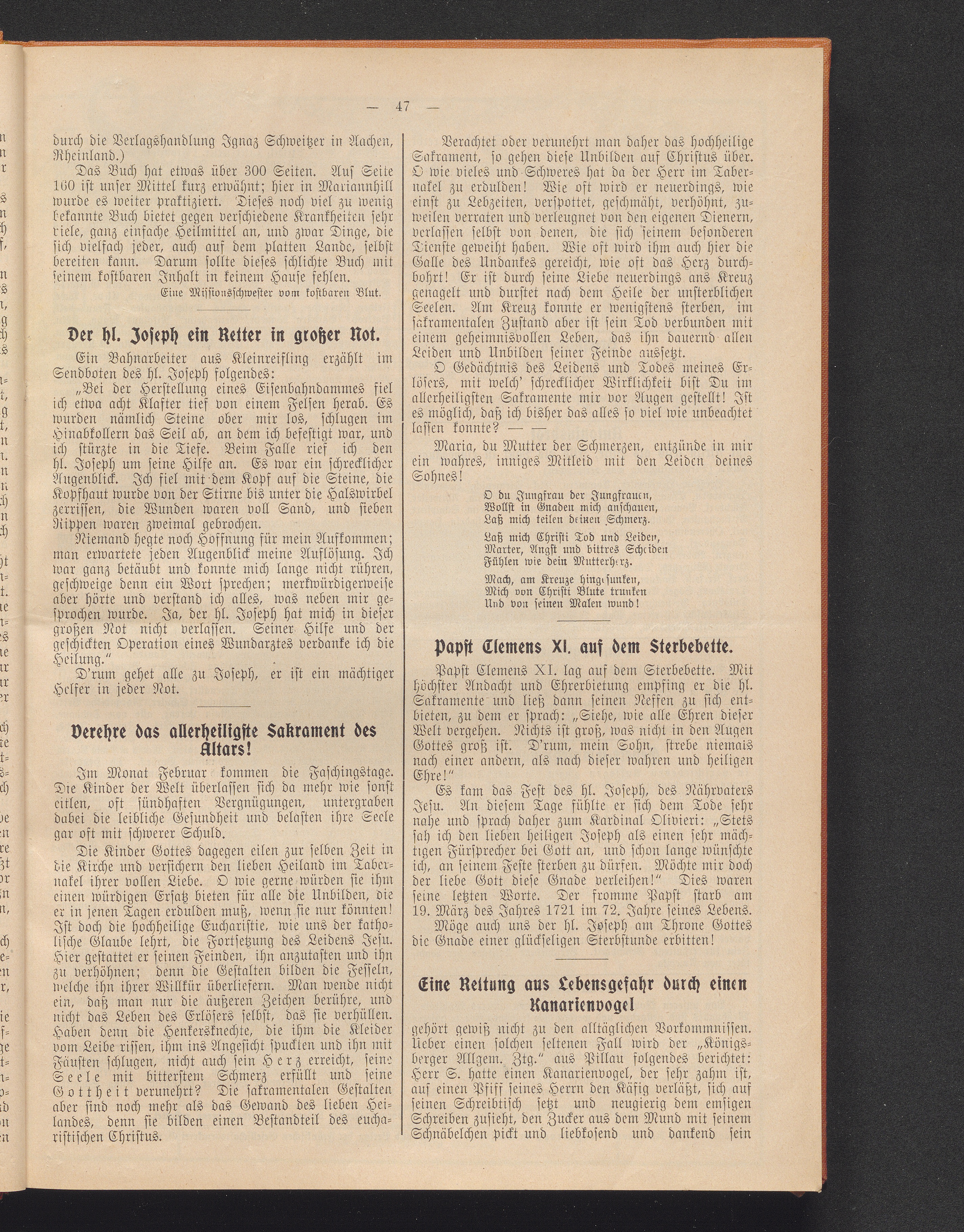 Eine Rettung aus Lebensgefahr durch einen Kanarienvogel