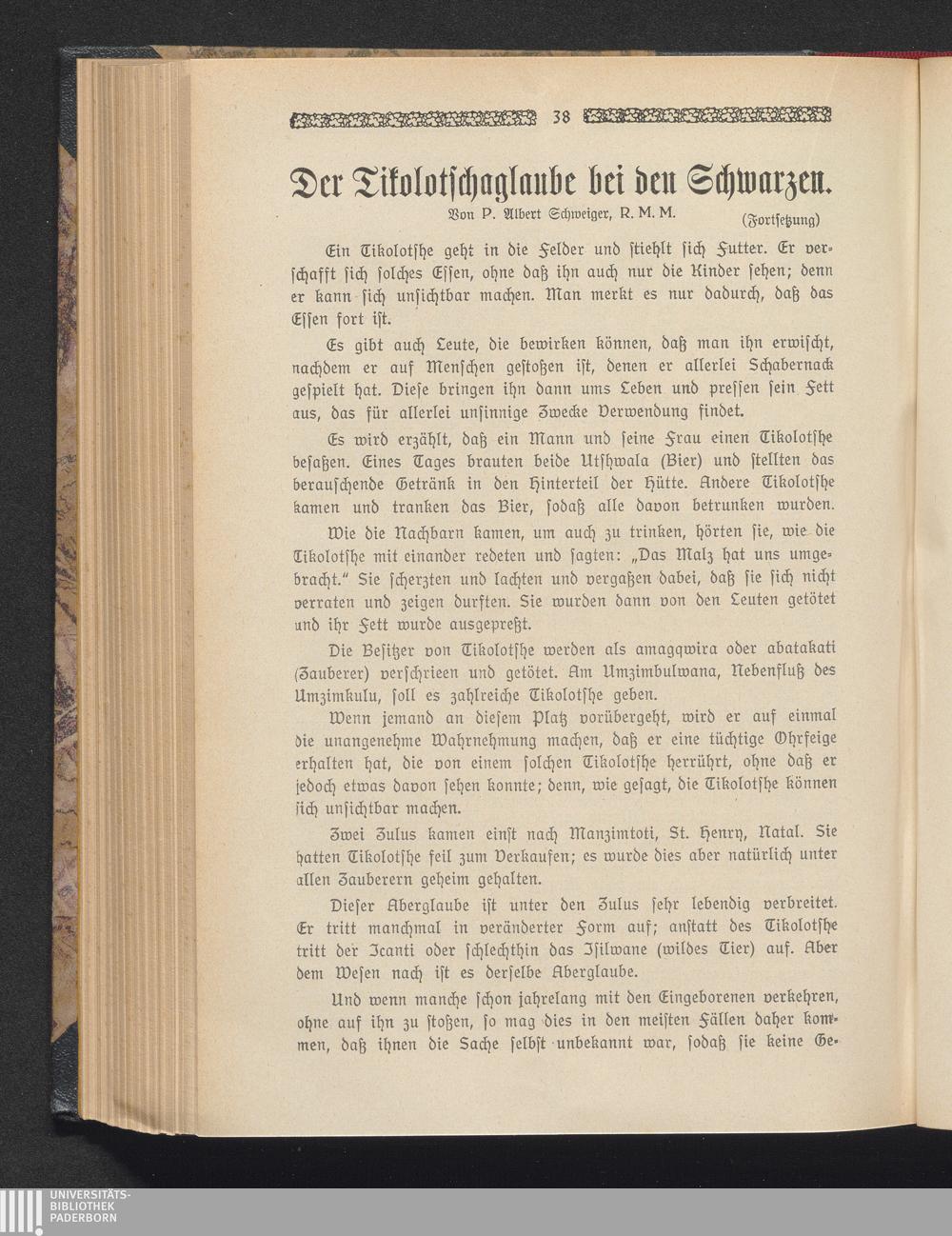 Der Tikolotschaglaube bei den Schwarzen.