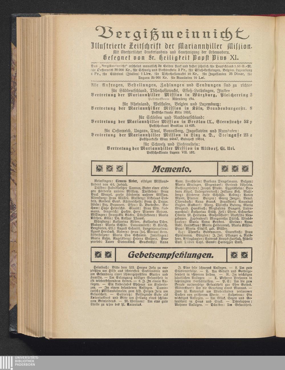 Gebetsempfehlungen.