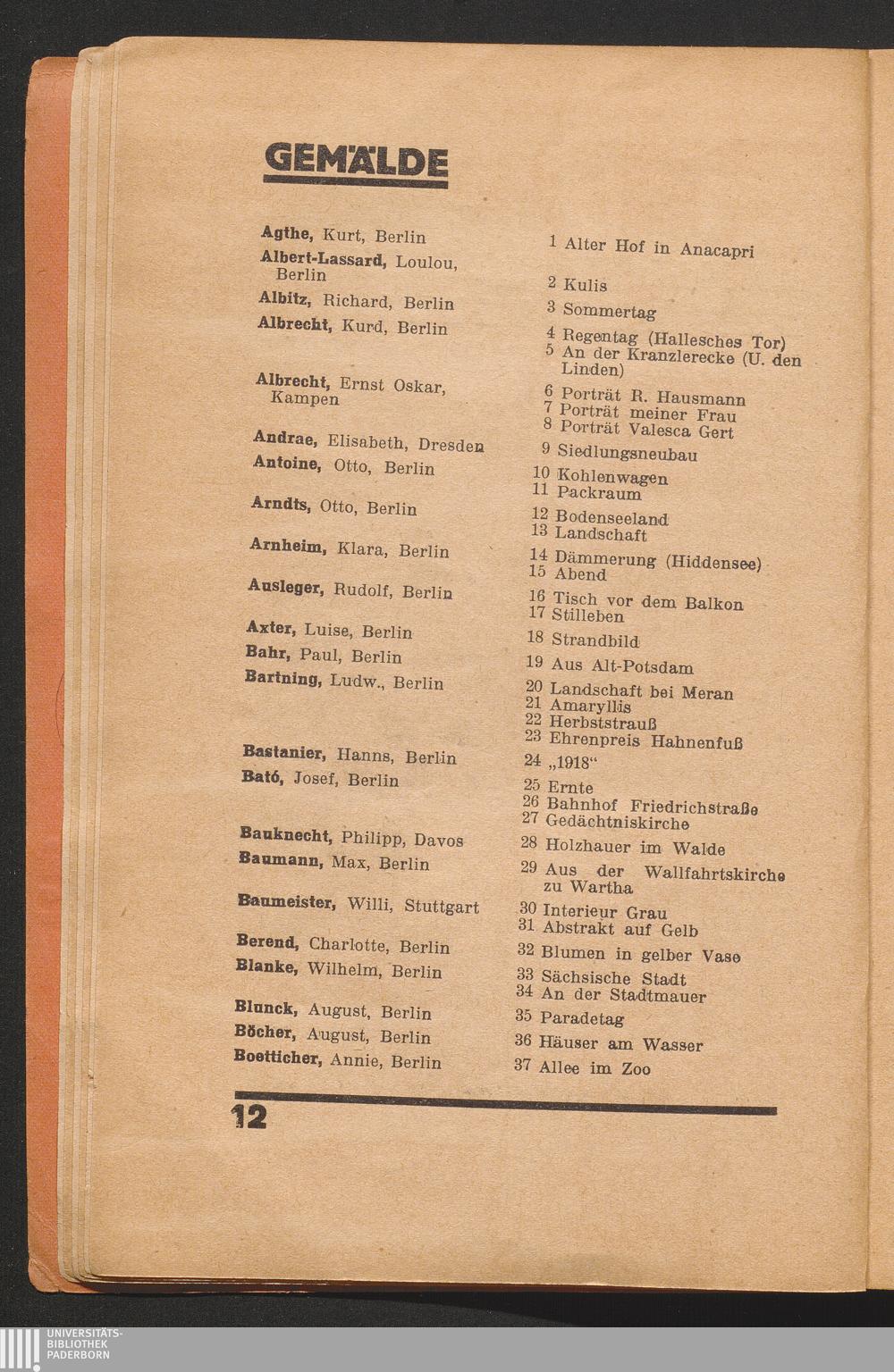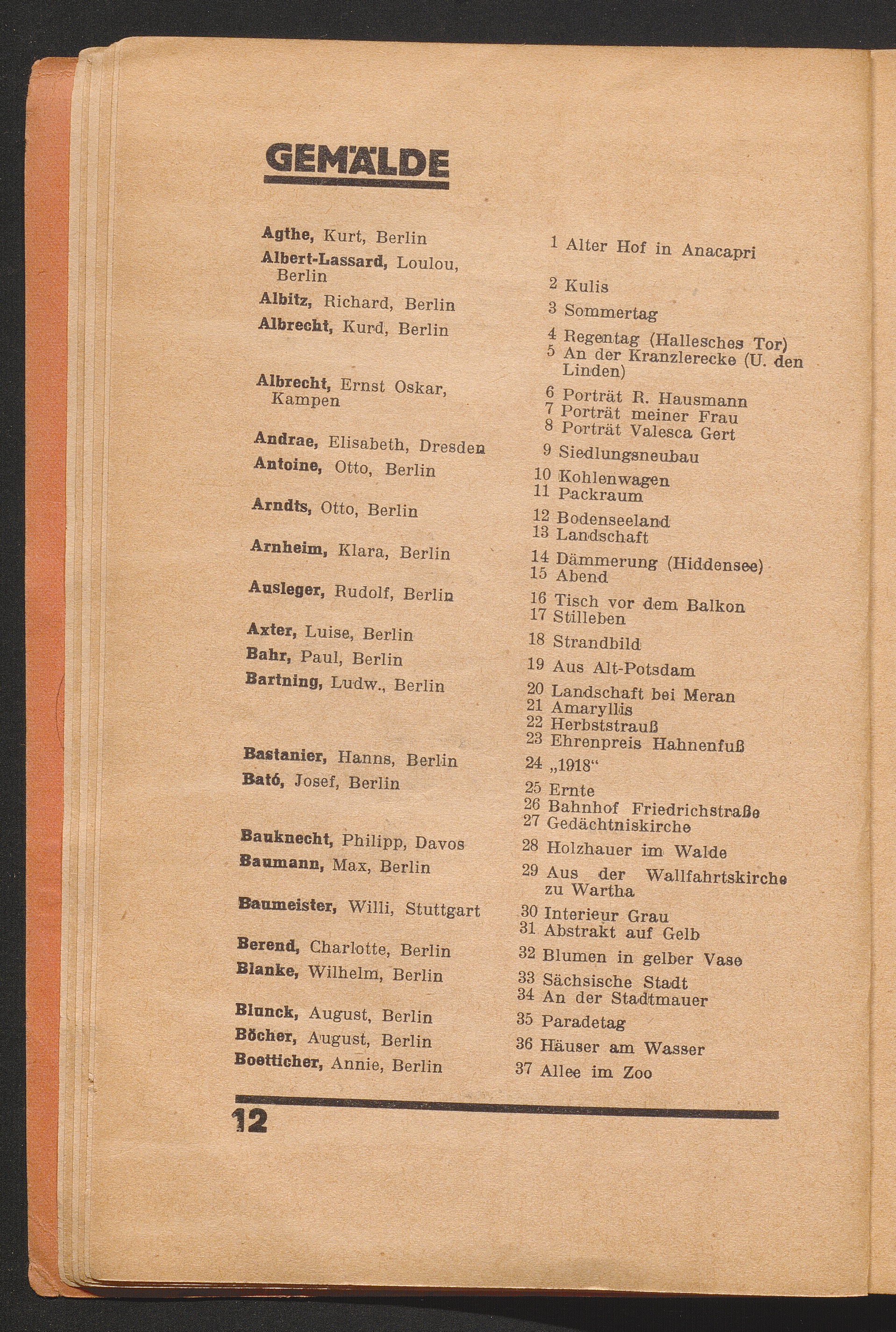 Namensverzeichnis Der Aussteller Und Titel Der Werke