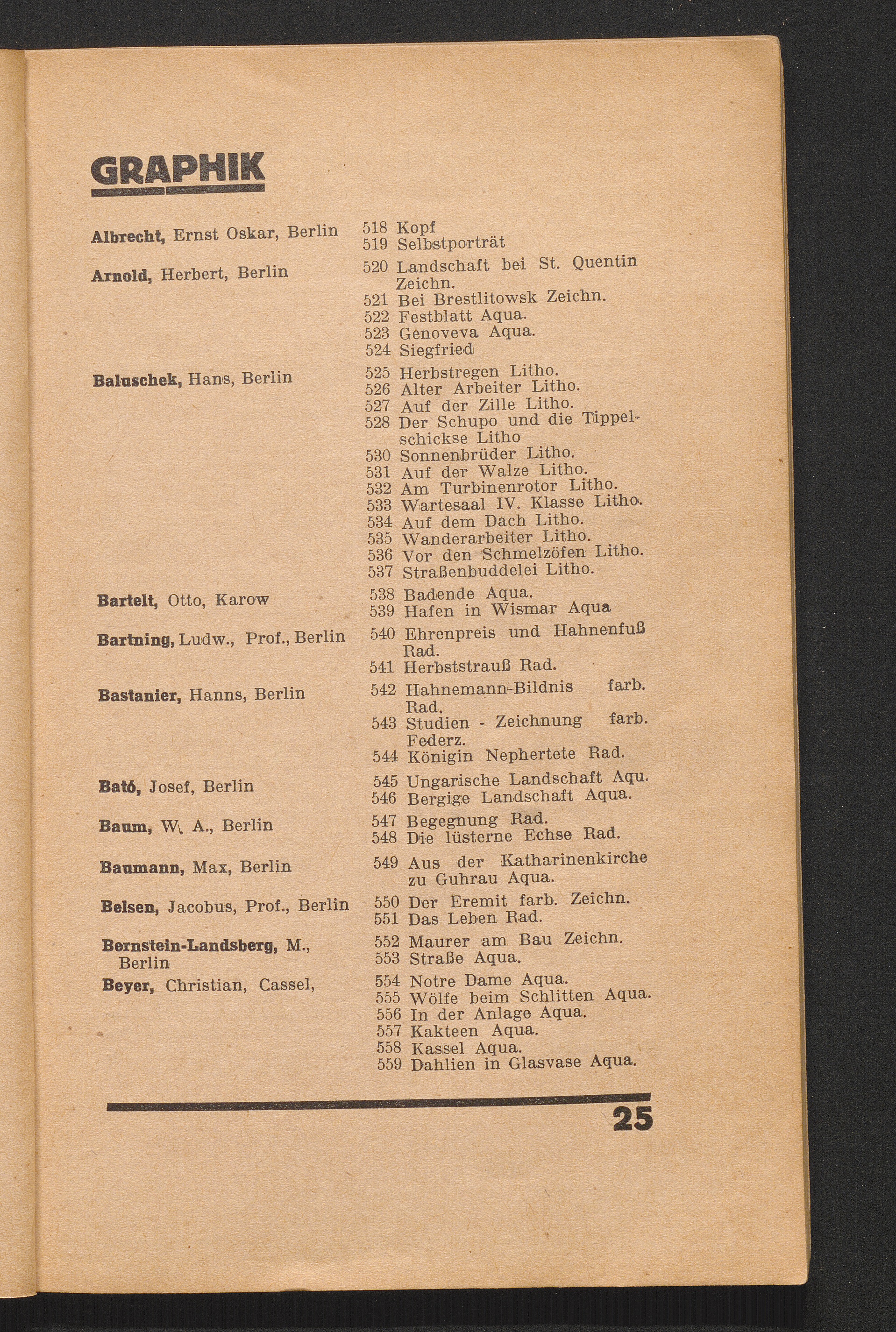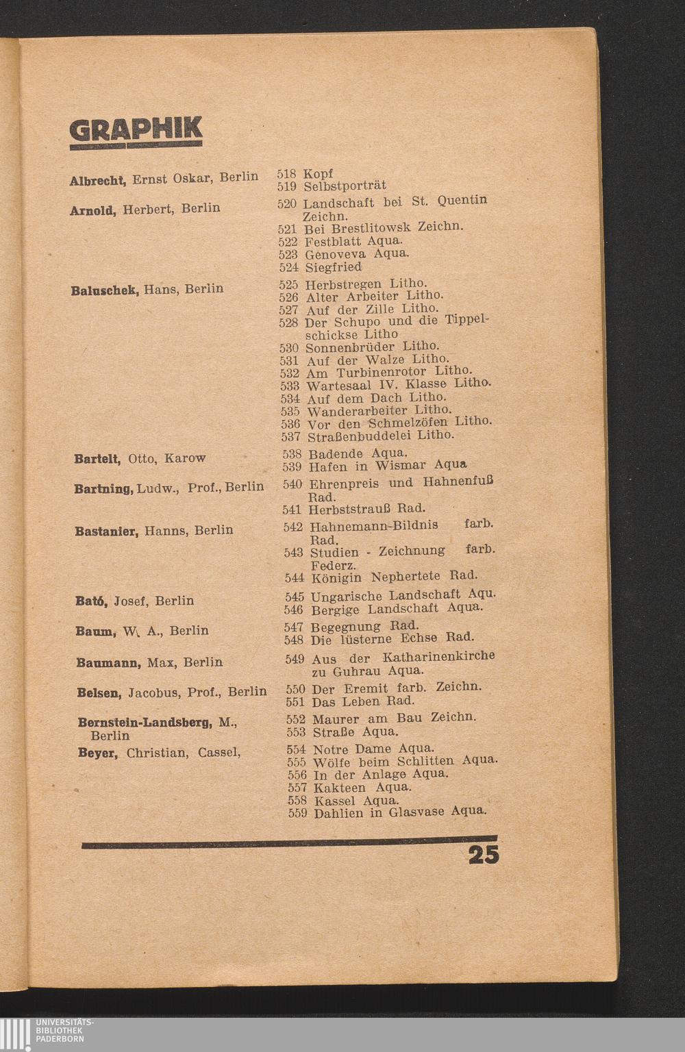 Namensverzeichnis Der Aussteller Und Titel Der Werke