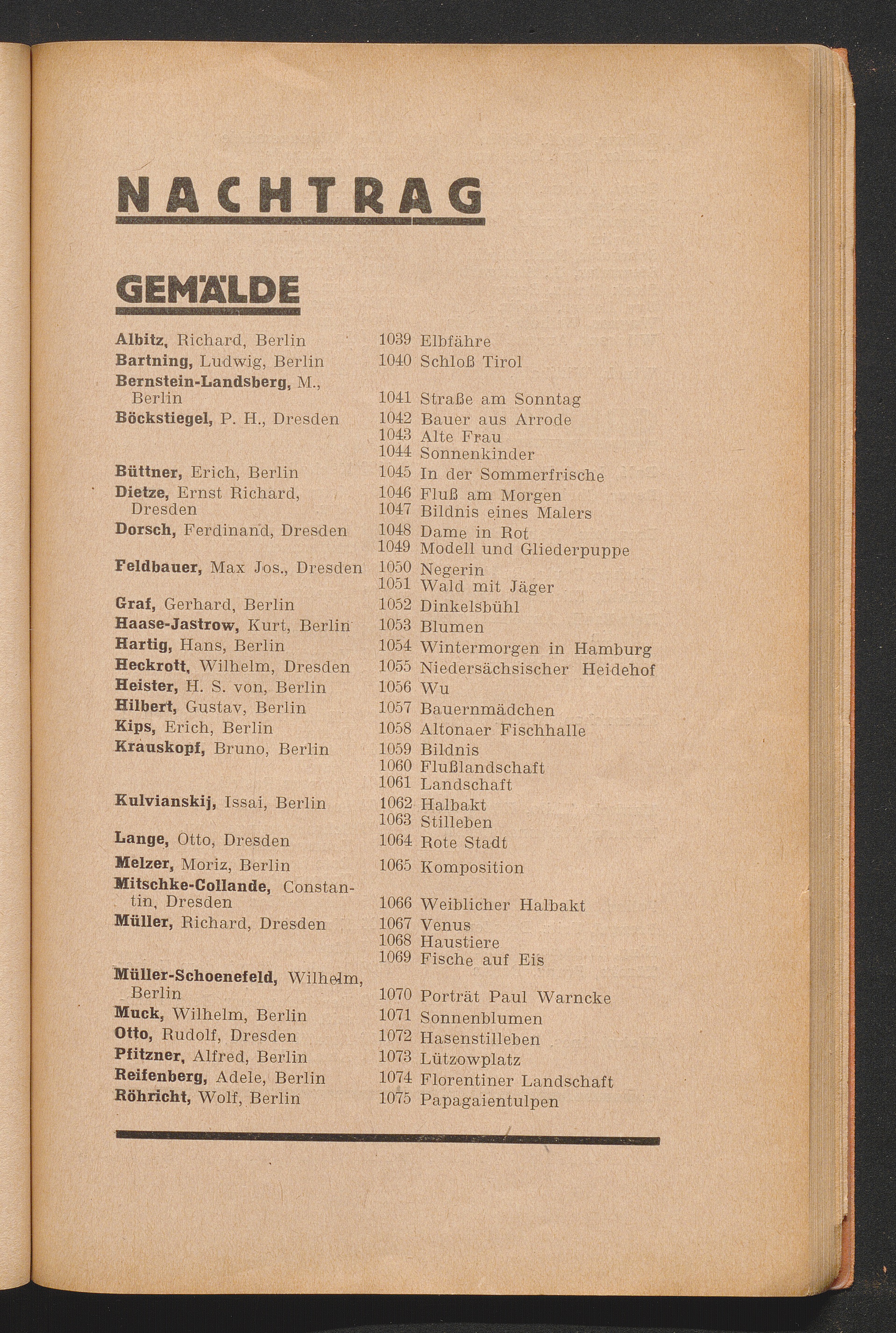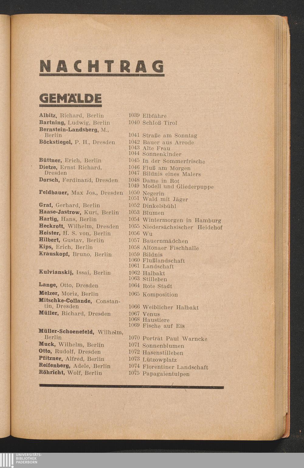 Namensverzeichnis Der Aussteller Und Titel Der Werke
