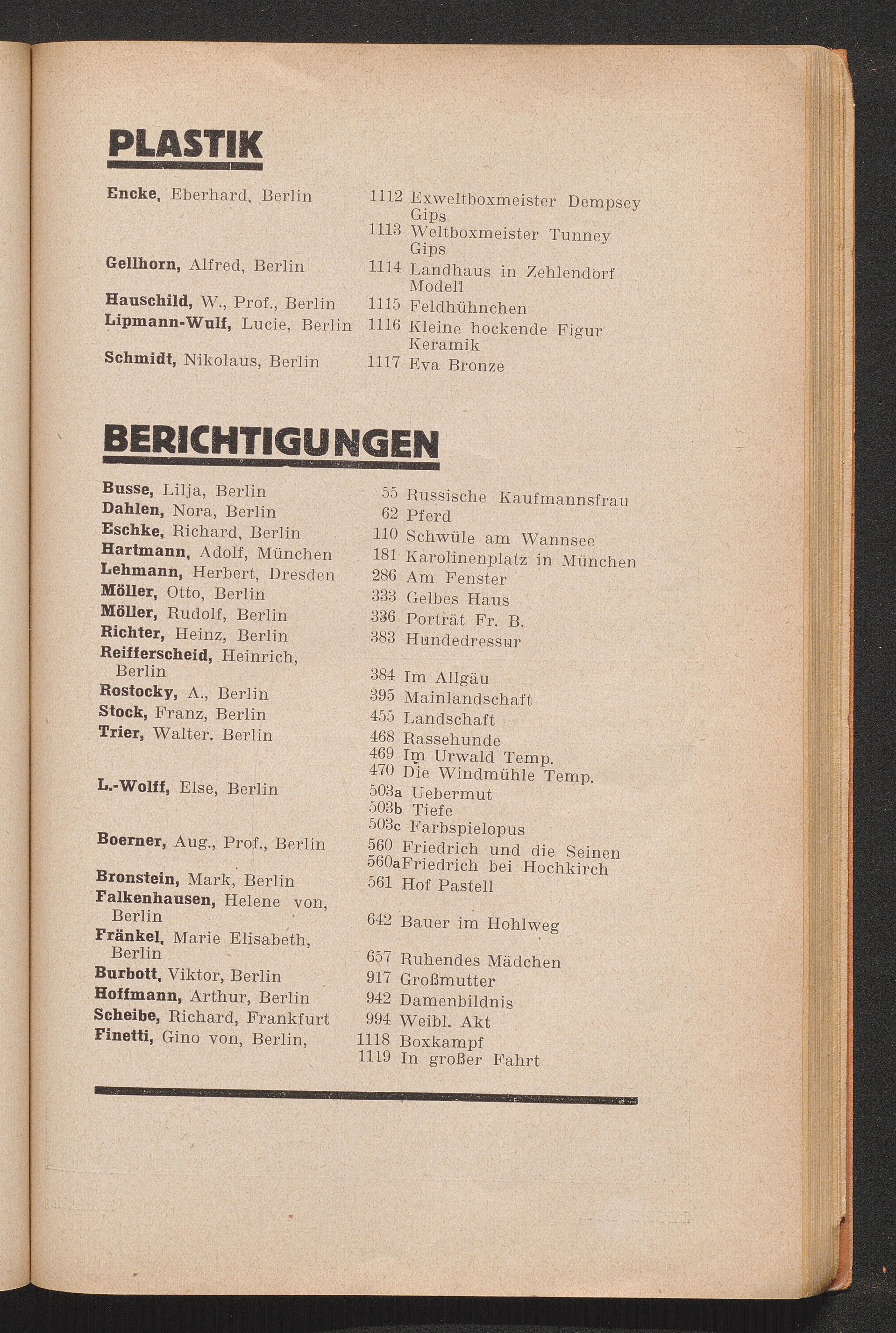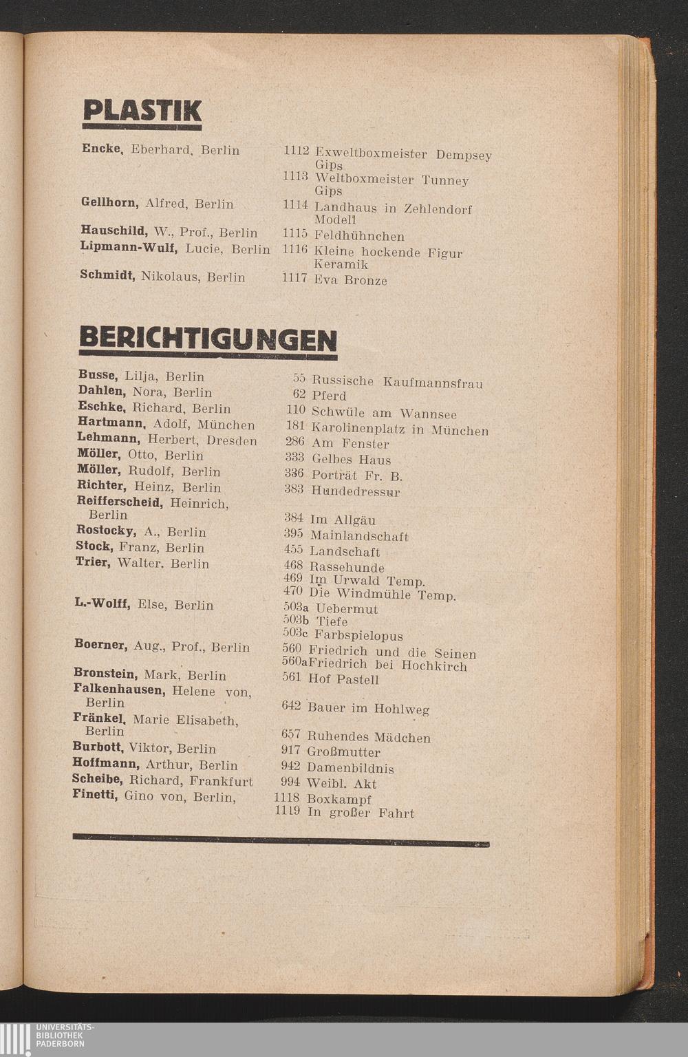 Namensverzeichnis Der Aussteller Und Titel Der Werke