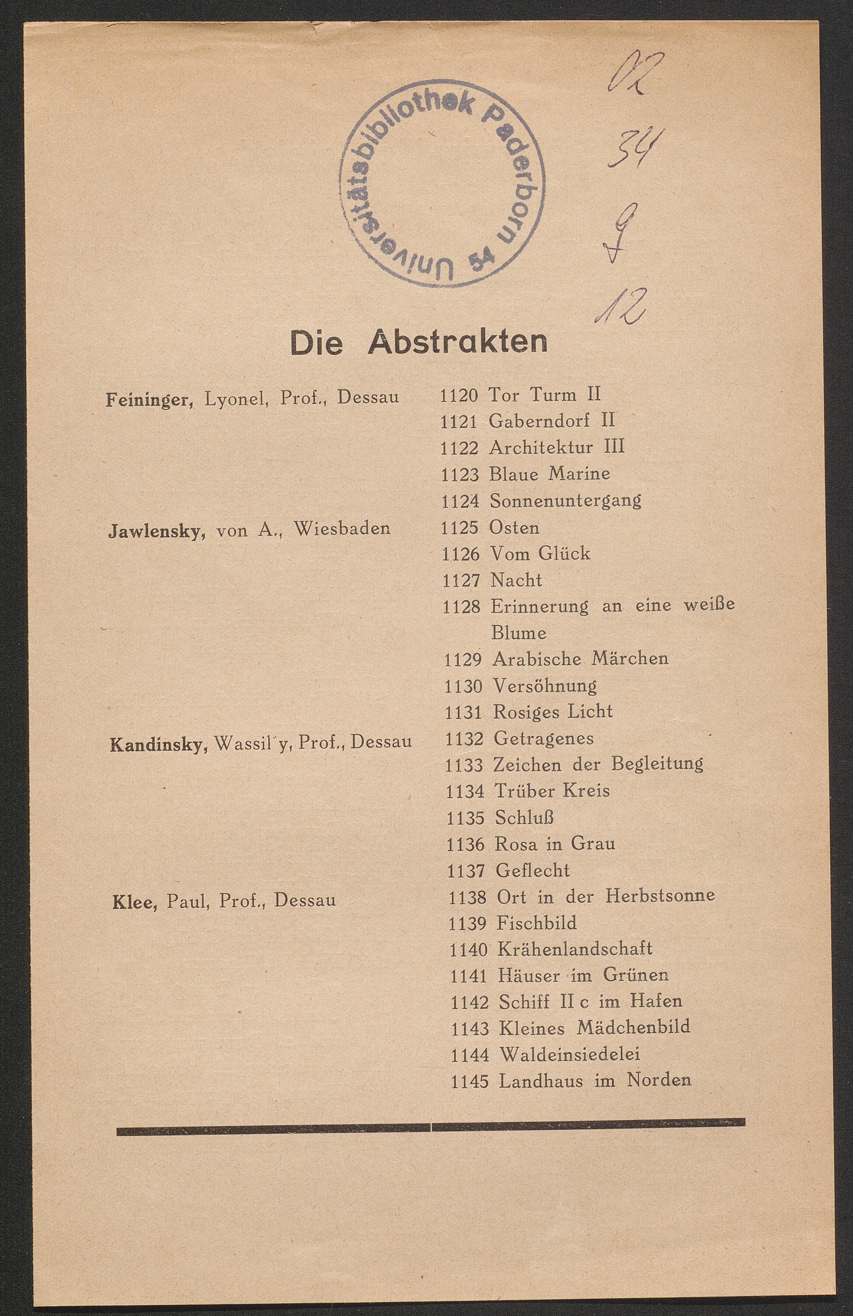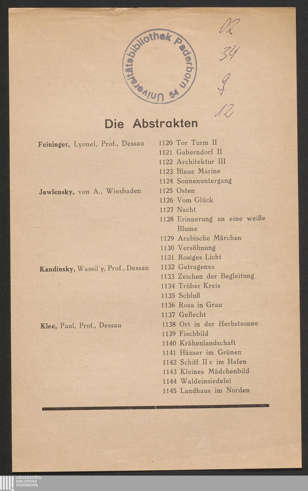Namensverzeichnis Der Aussteller Und Titel Der Werke