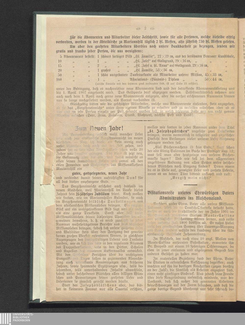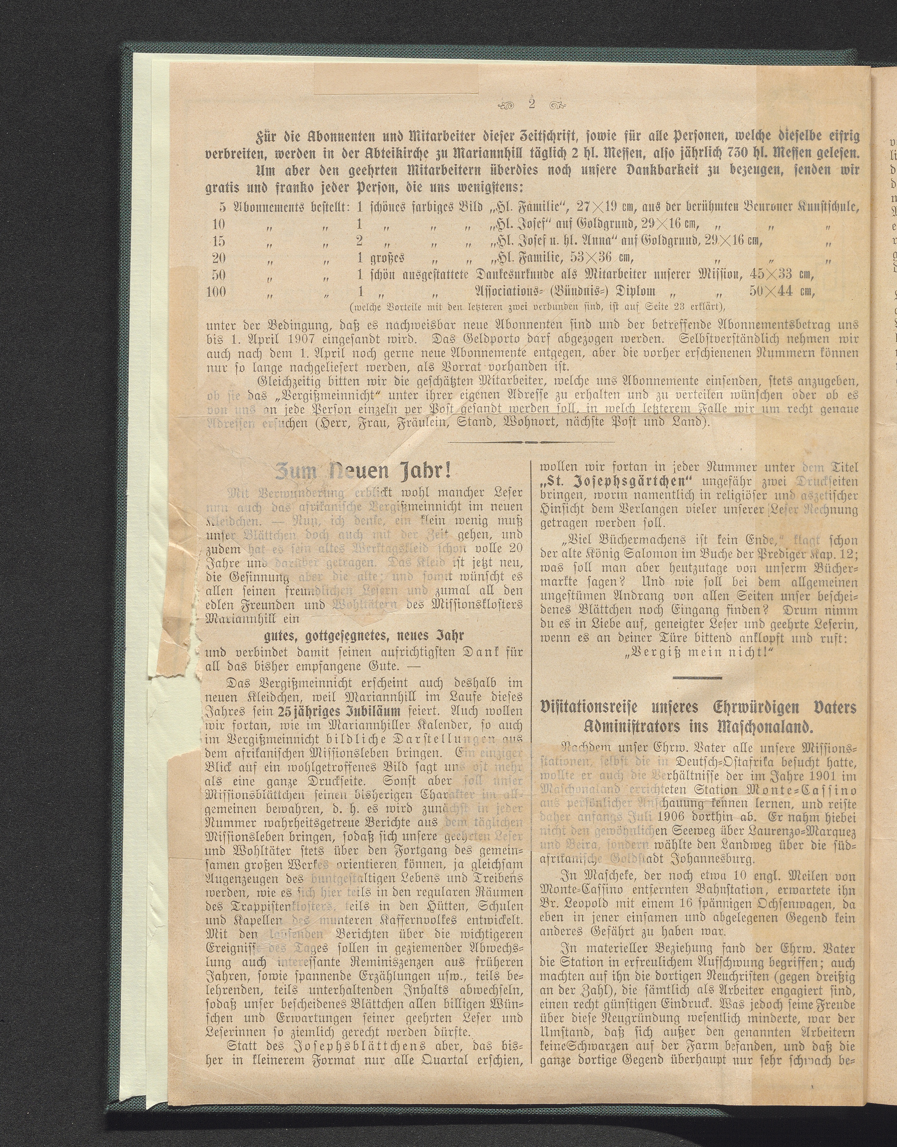 Visitationsreise unseres Ehrwürdigen Vaters Administrators ins Maschonaland.