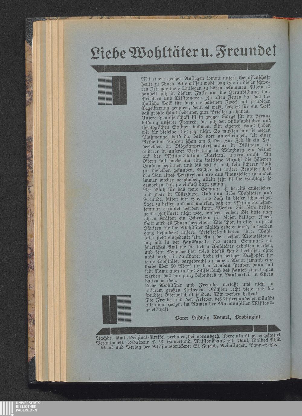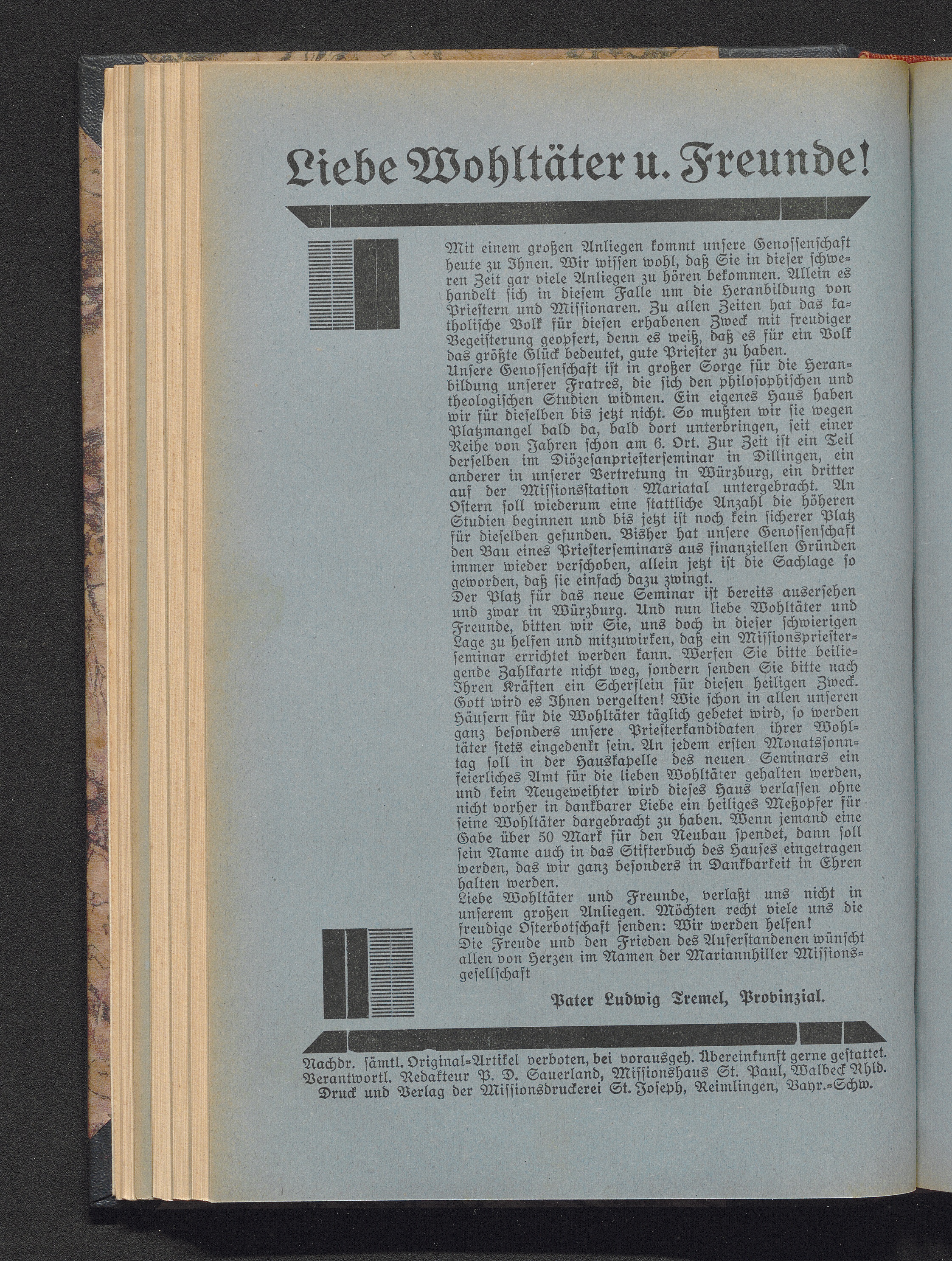 Liebe Wohltäter u. Freunde!
