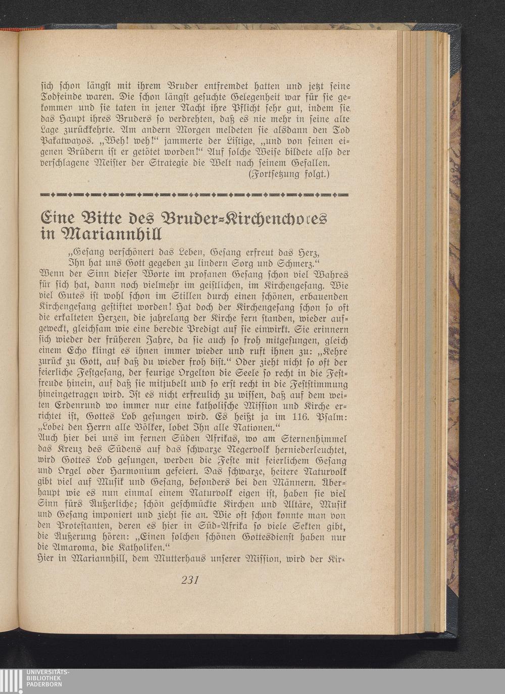 Eine Bitte des Bruder-Kirchenchores in Mariannhill