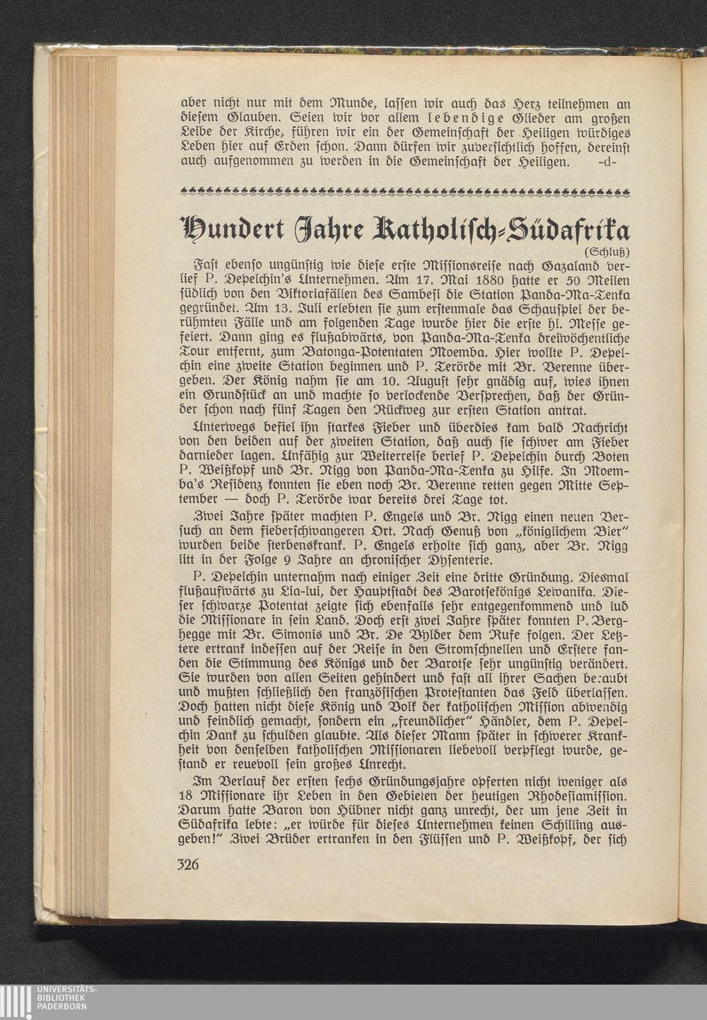 Hundert Jahre Katholisch-Südafrika.