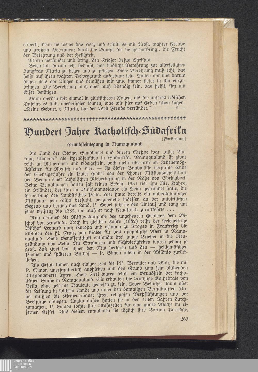 Hundert Jahre Katholisch-Südafrika.