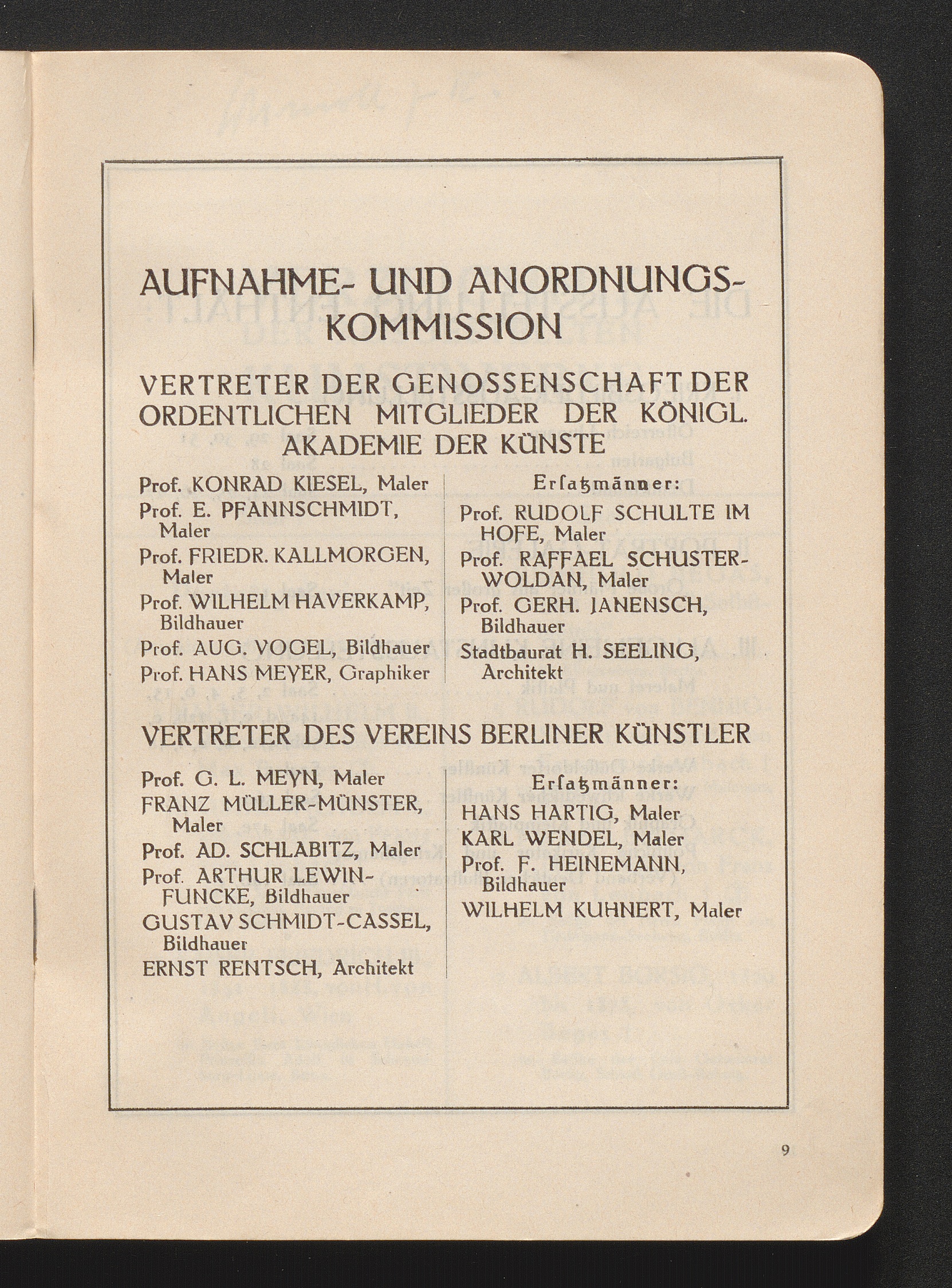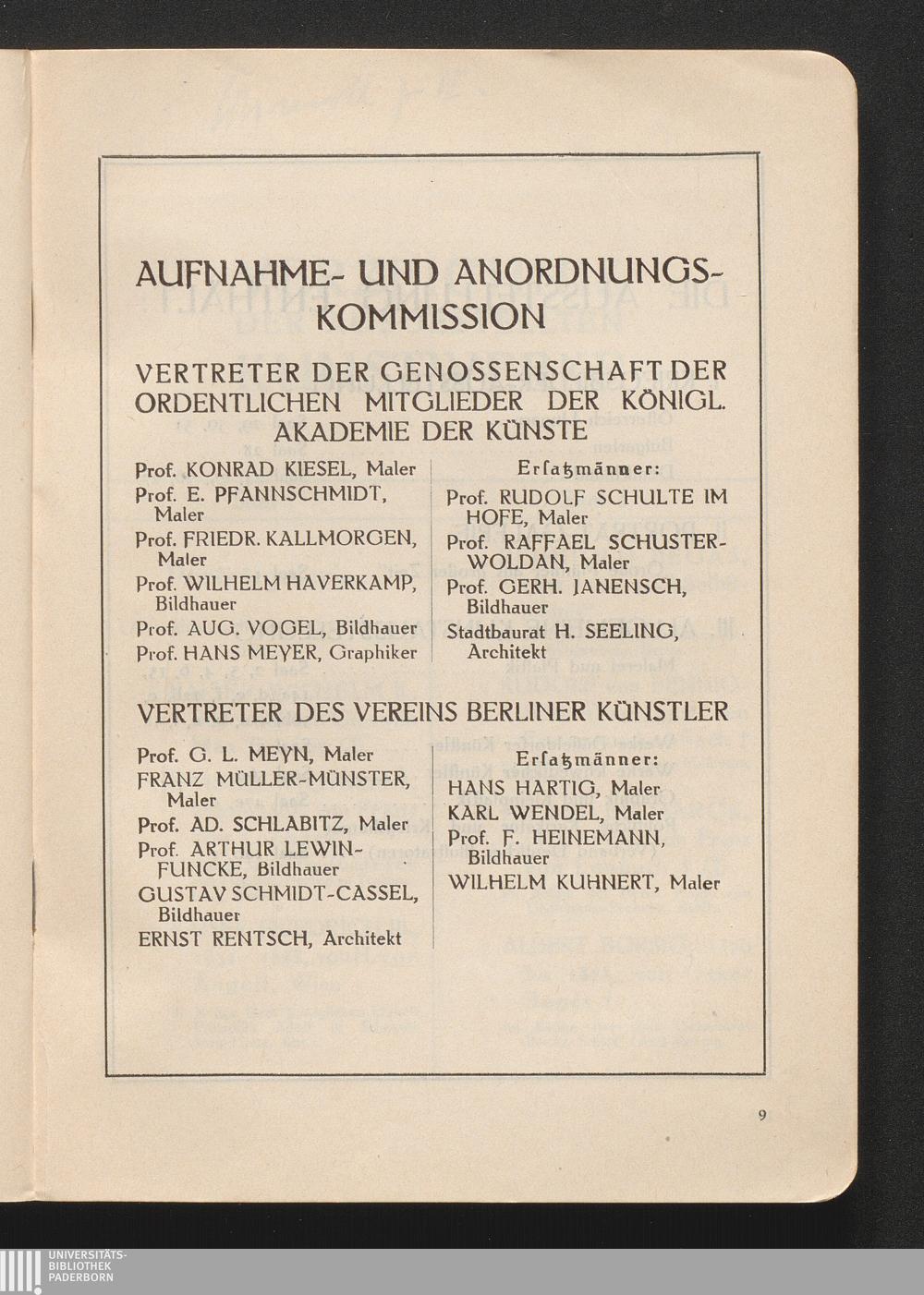 Verzeichnis Der Ausstellenden Künstler