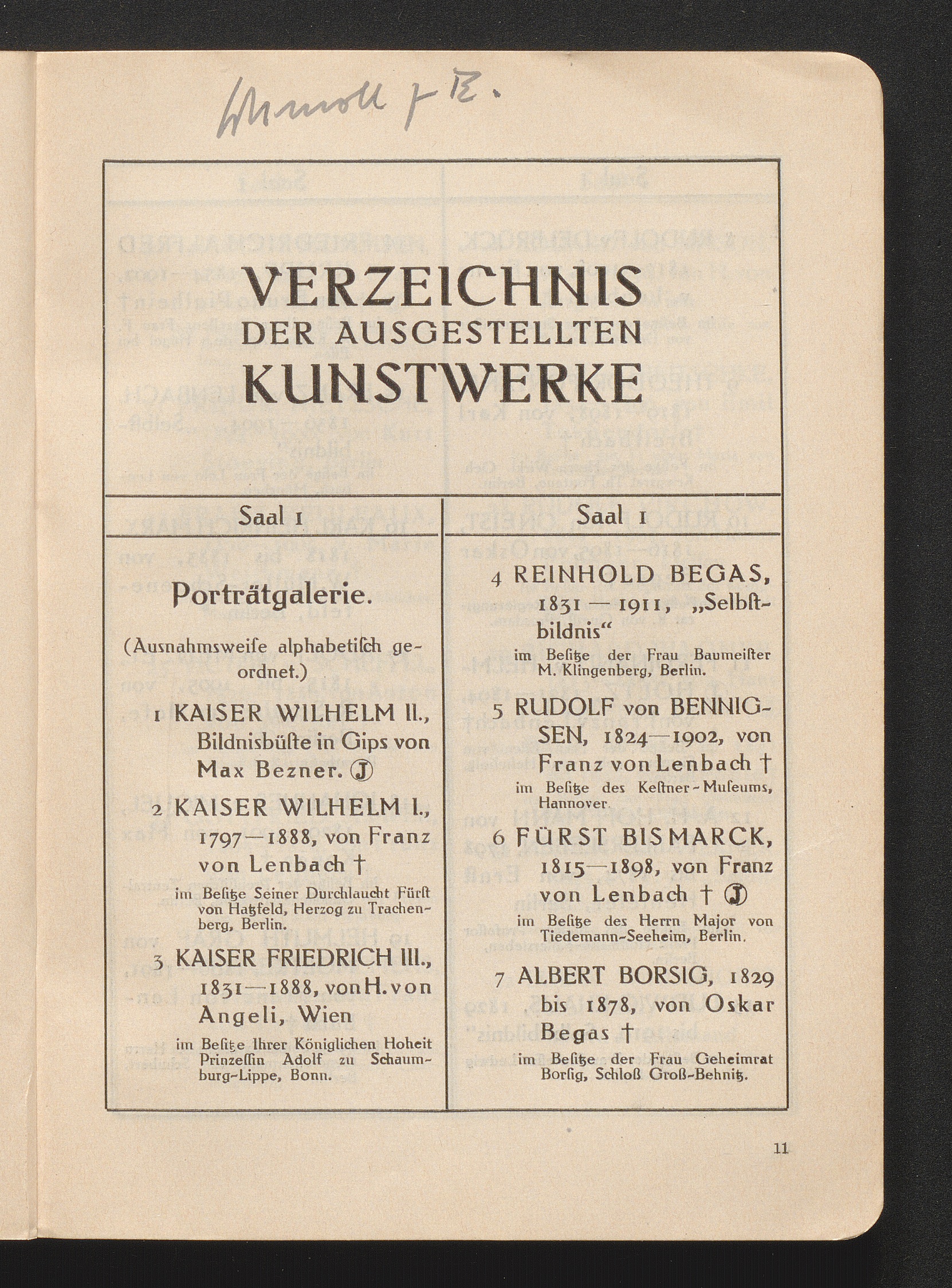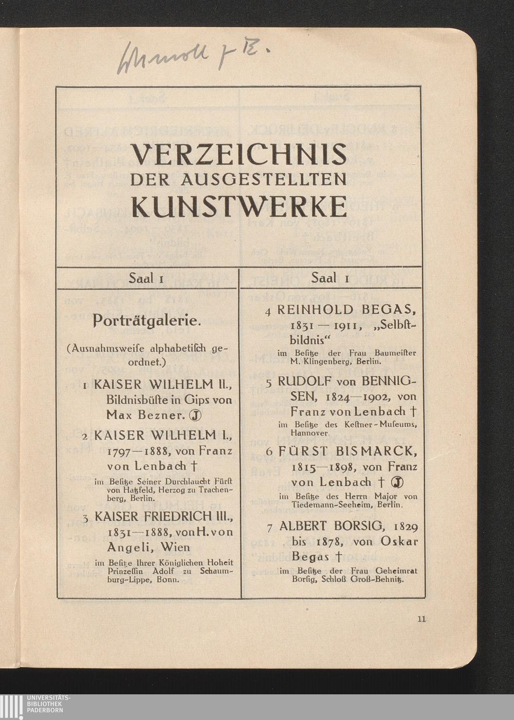 Verzeichnis Der Ausgestellten Kunstwerke