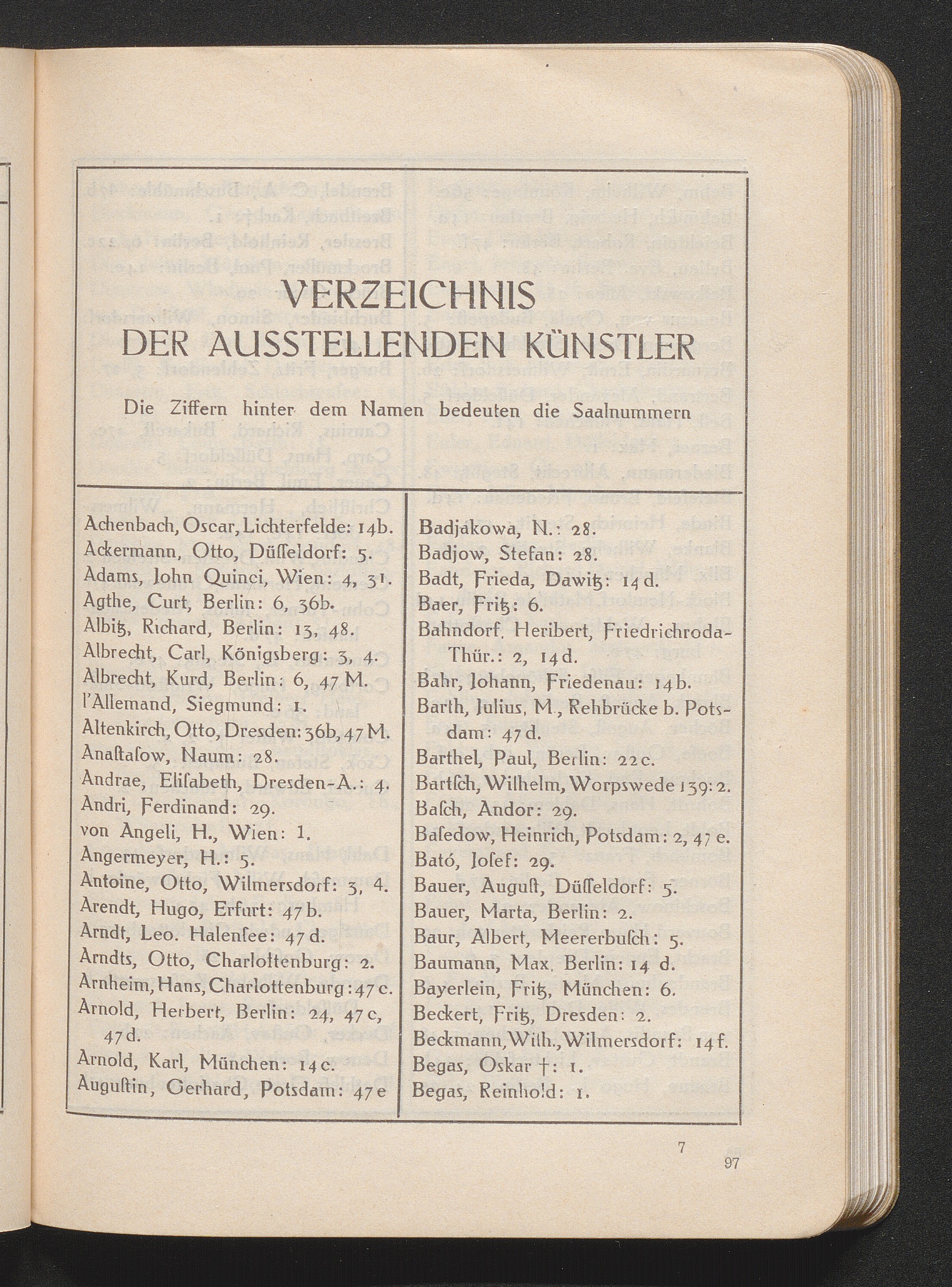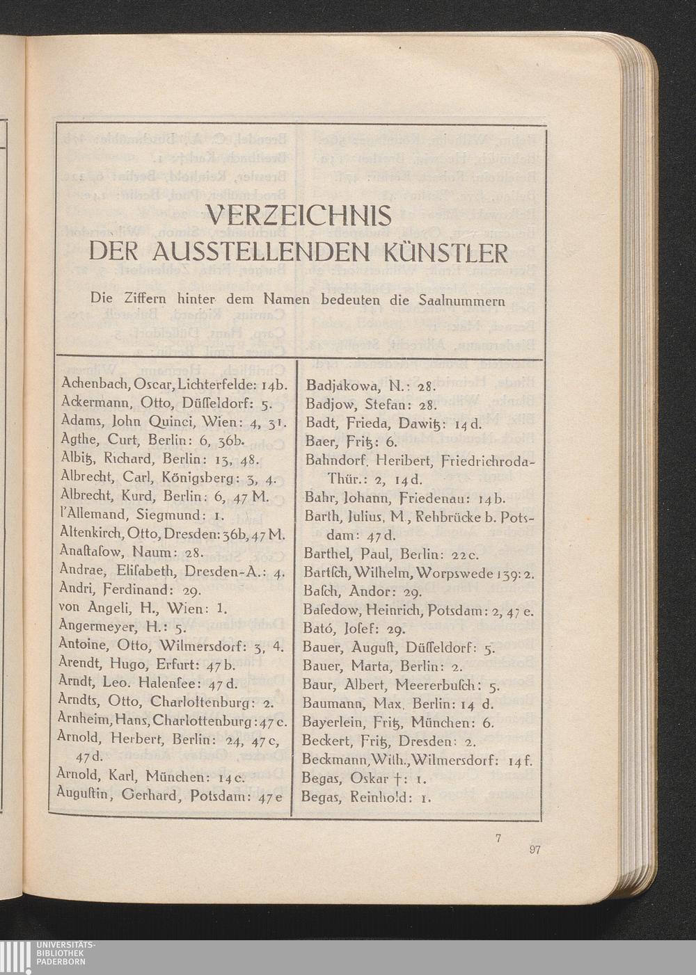 Verzeichnis Der Ausstellenden Künstler