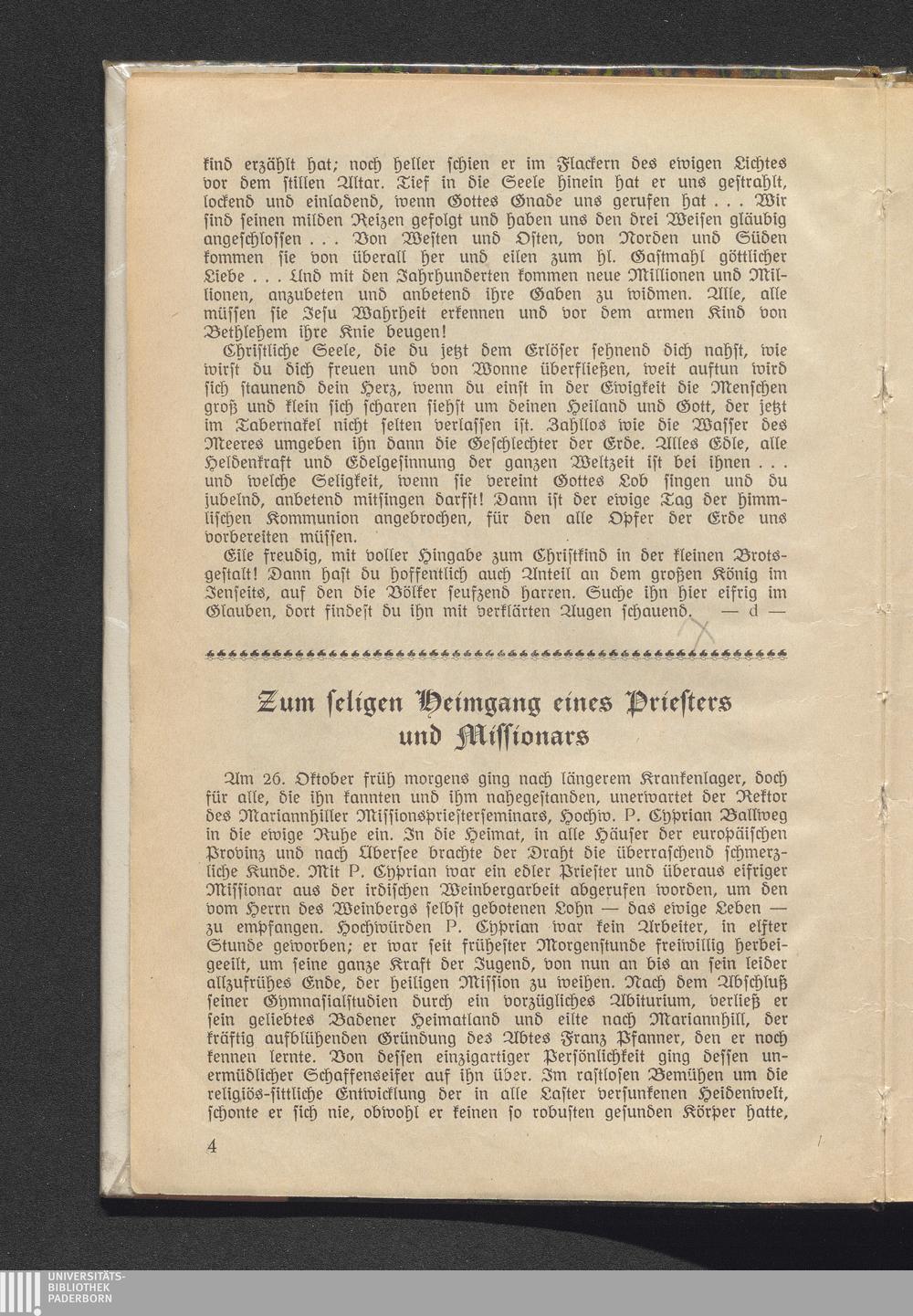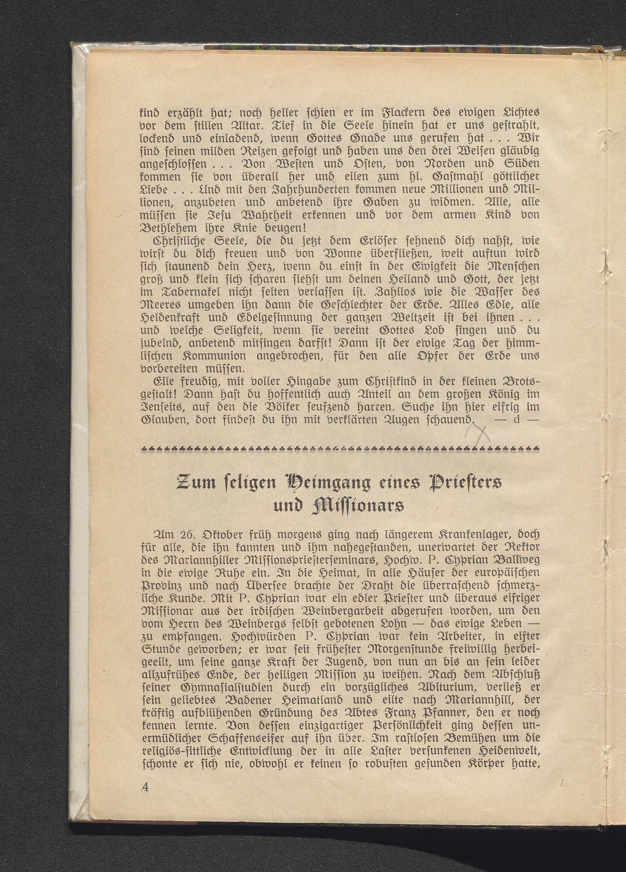 Zum seligen Heimgang eines Priesters und Missionars.