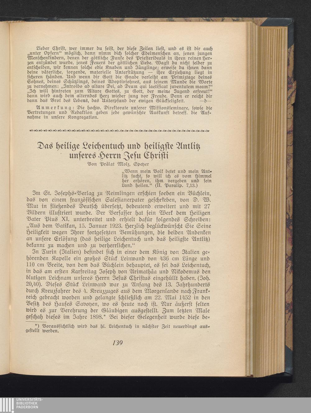 Das heilige Leichentuch und heiligste Antlitz unseres Herrn Jesu Christi