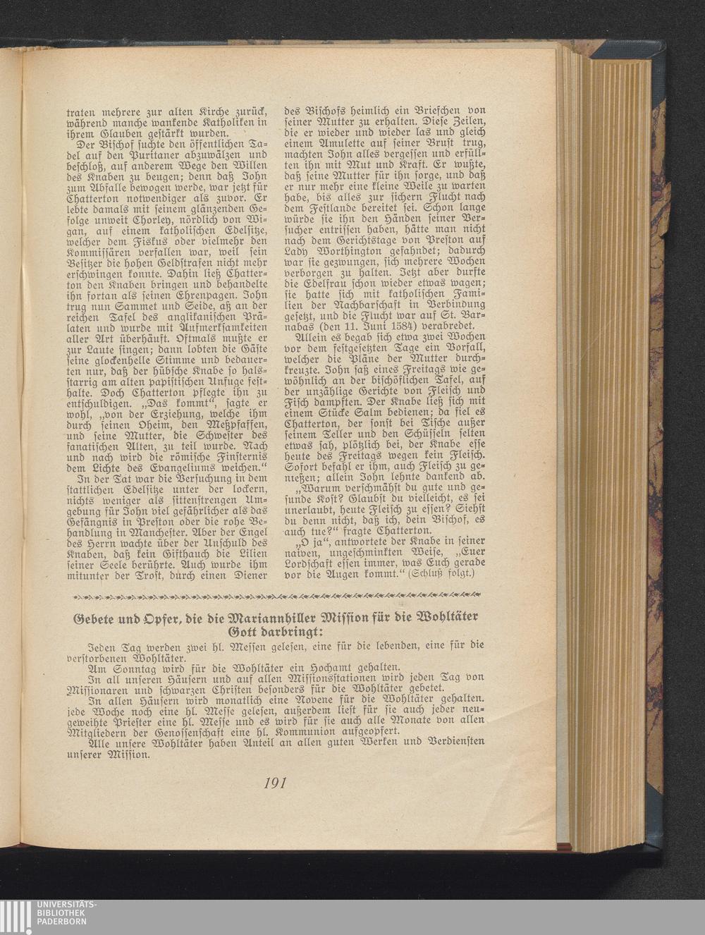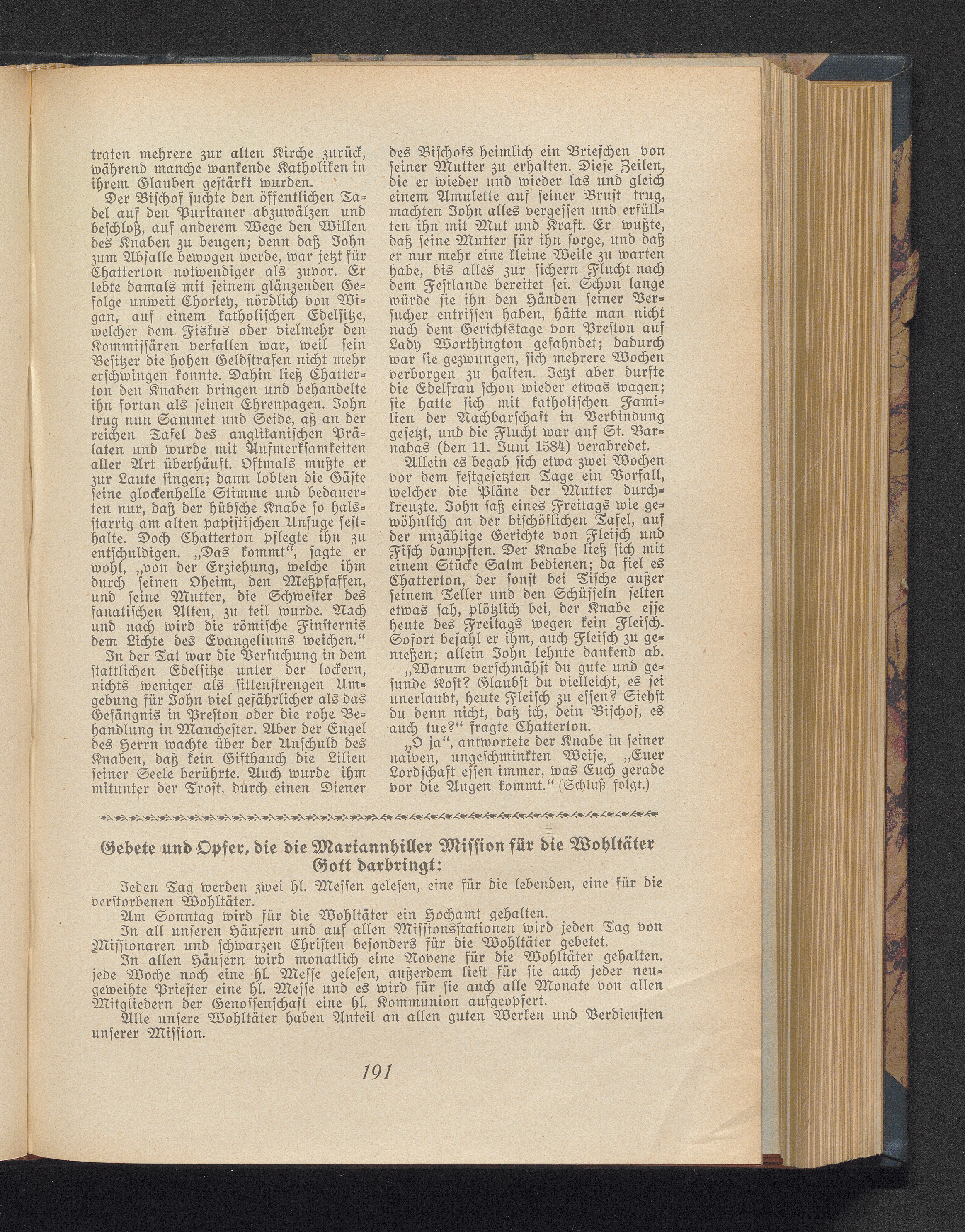 Gebete und Opfer, die die Mariannhiller Mission für die Wohtäter Gott darbringt: