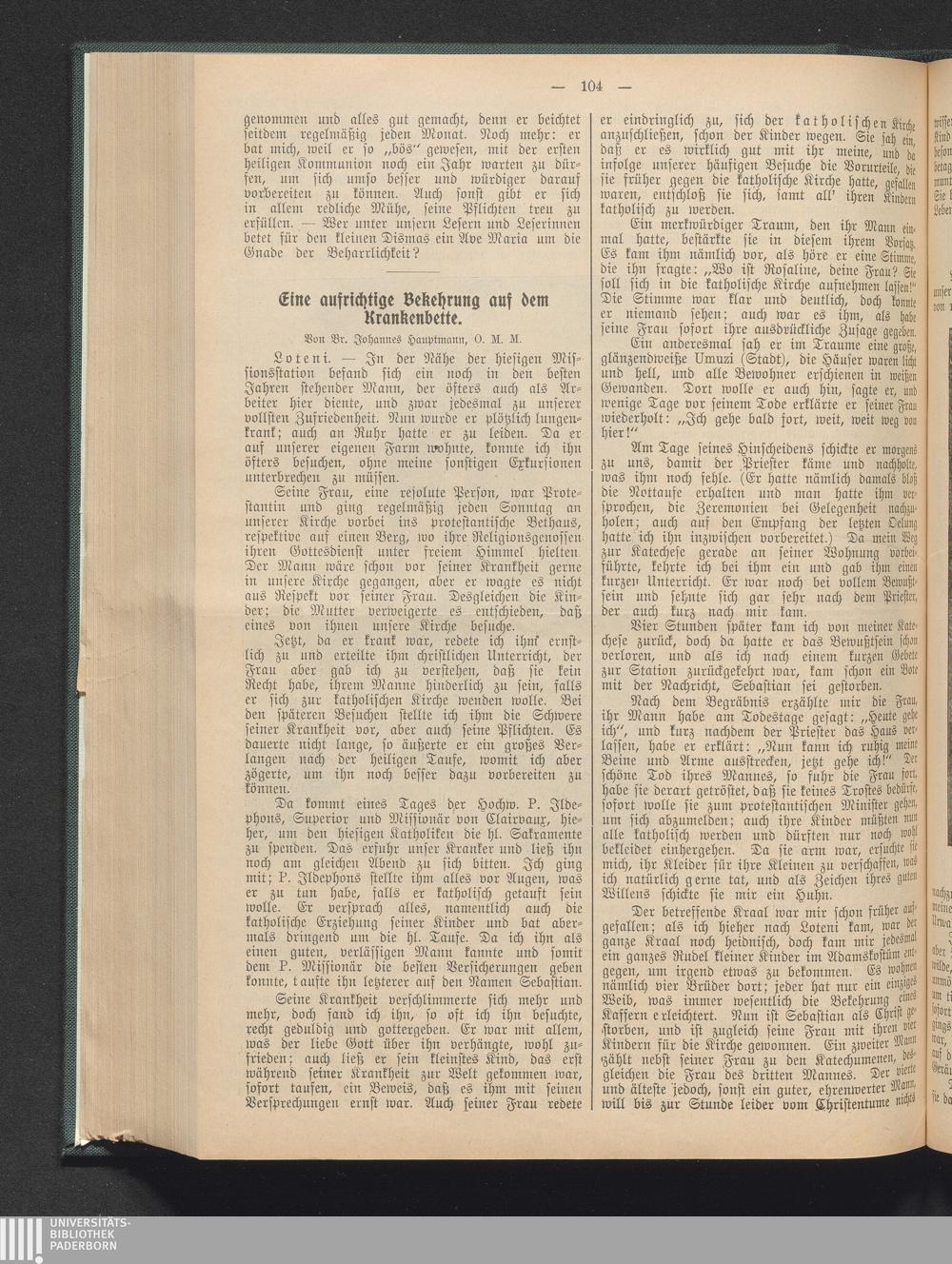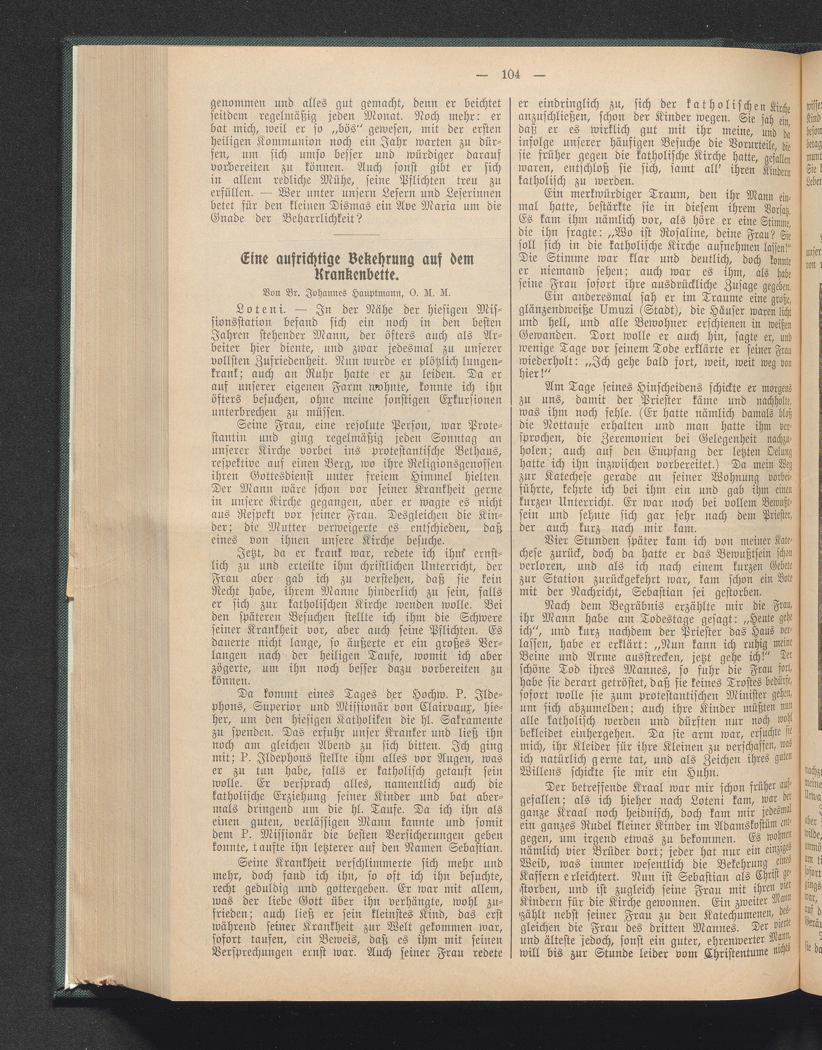 Eine aufrichtige Bekehrung auf dem Krankenbette.