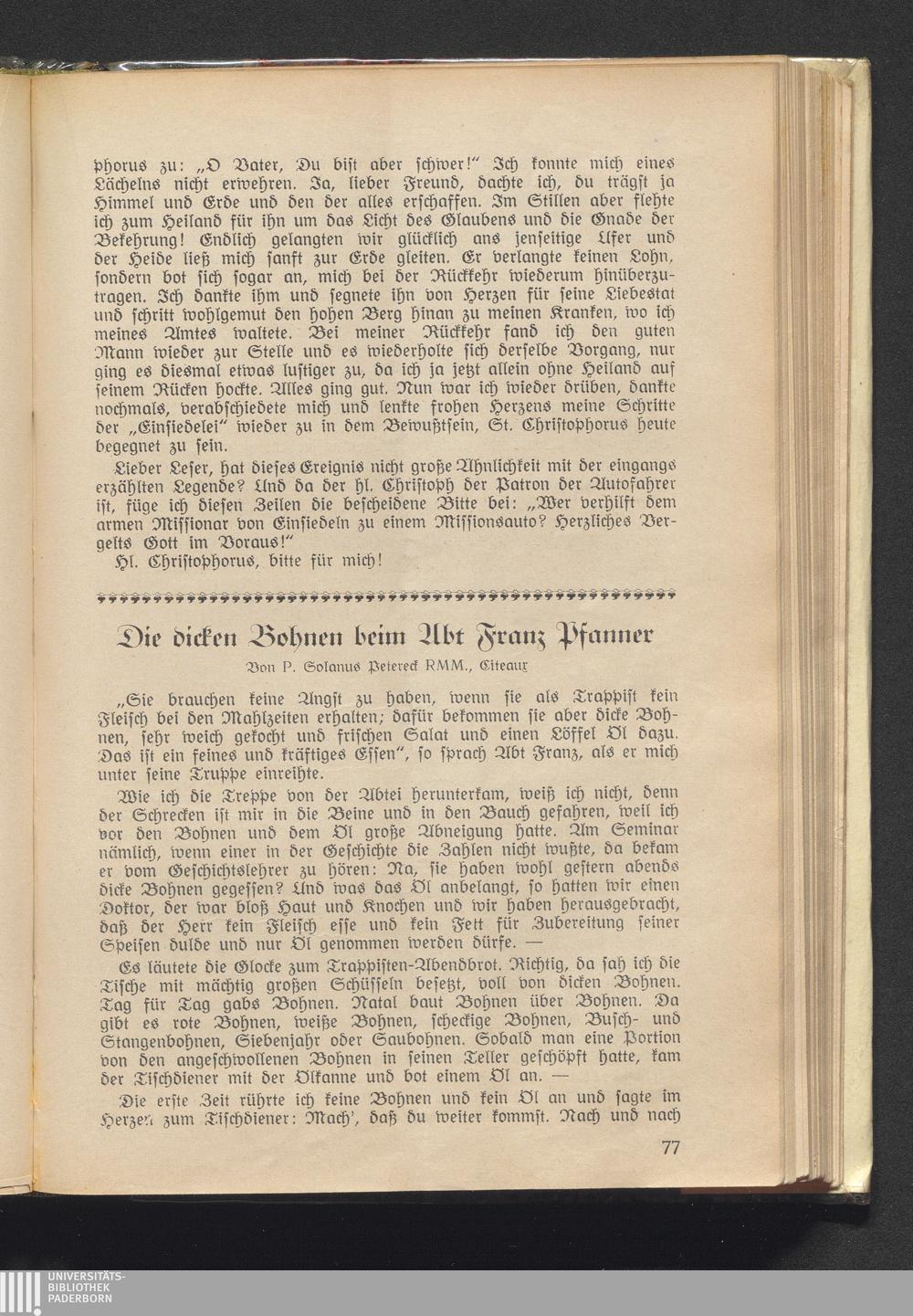 Die dicken Bohnen beim Abt Franz Pfanner
