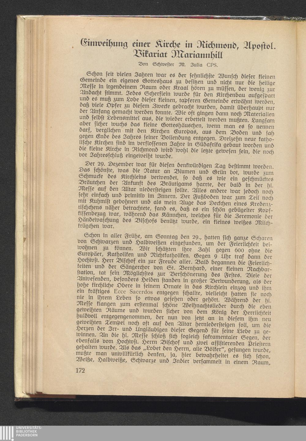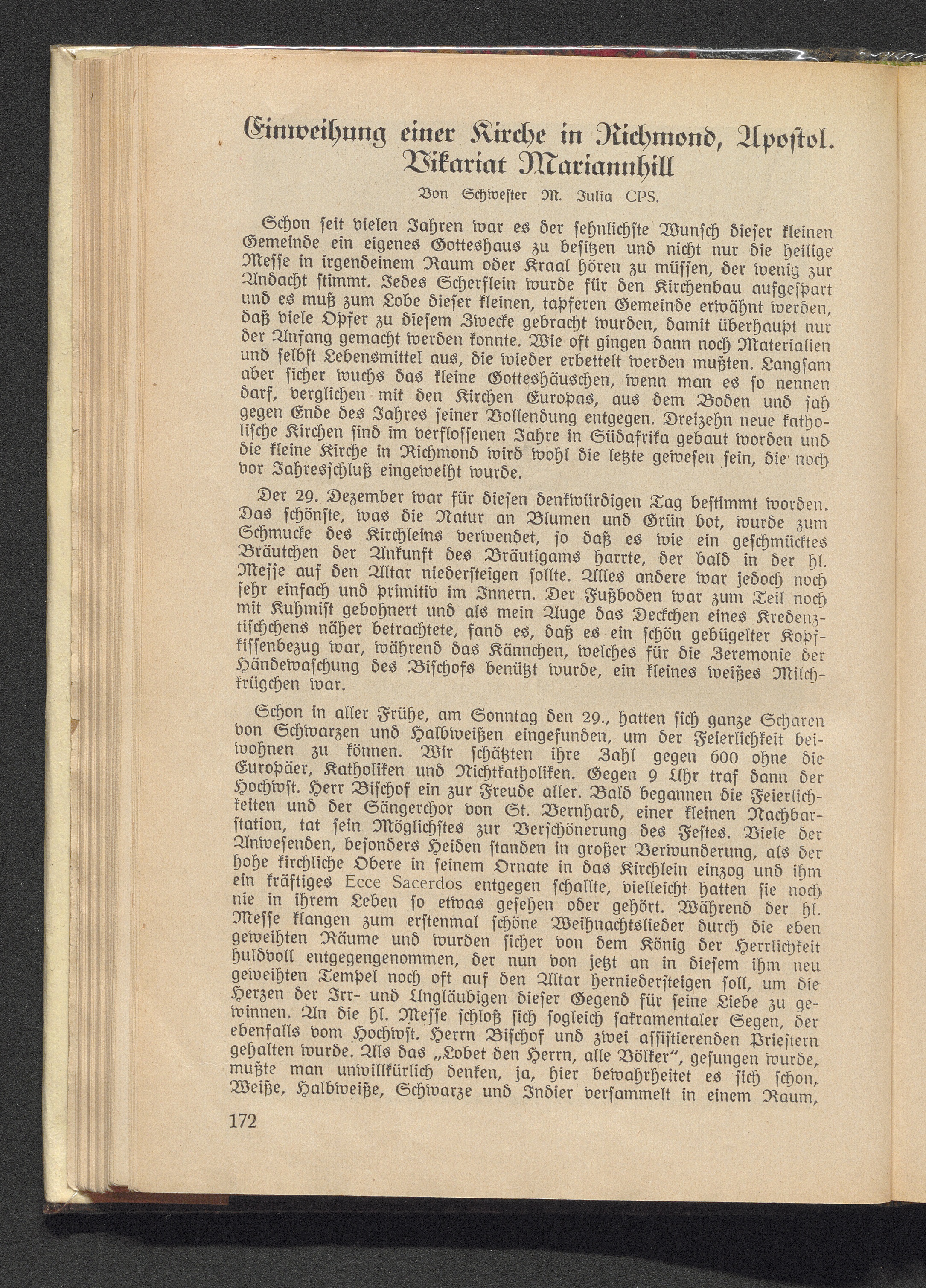 Einweihung einer Kirche in Richmond, Apostol. Vikariat Mariannhill