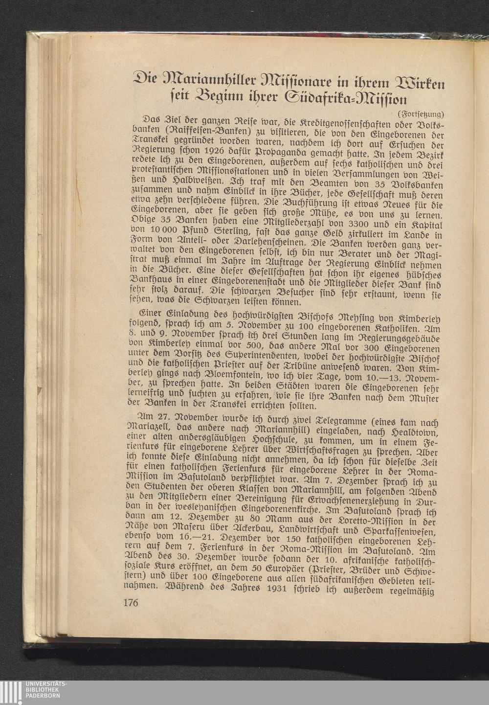 Die Mariannhiller Missionare in ihrem Wirken seit Beginn ihrer Südafrika-Mission