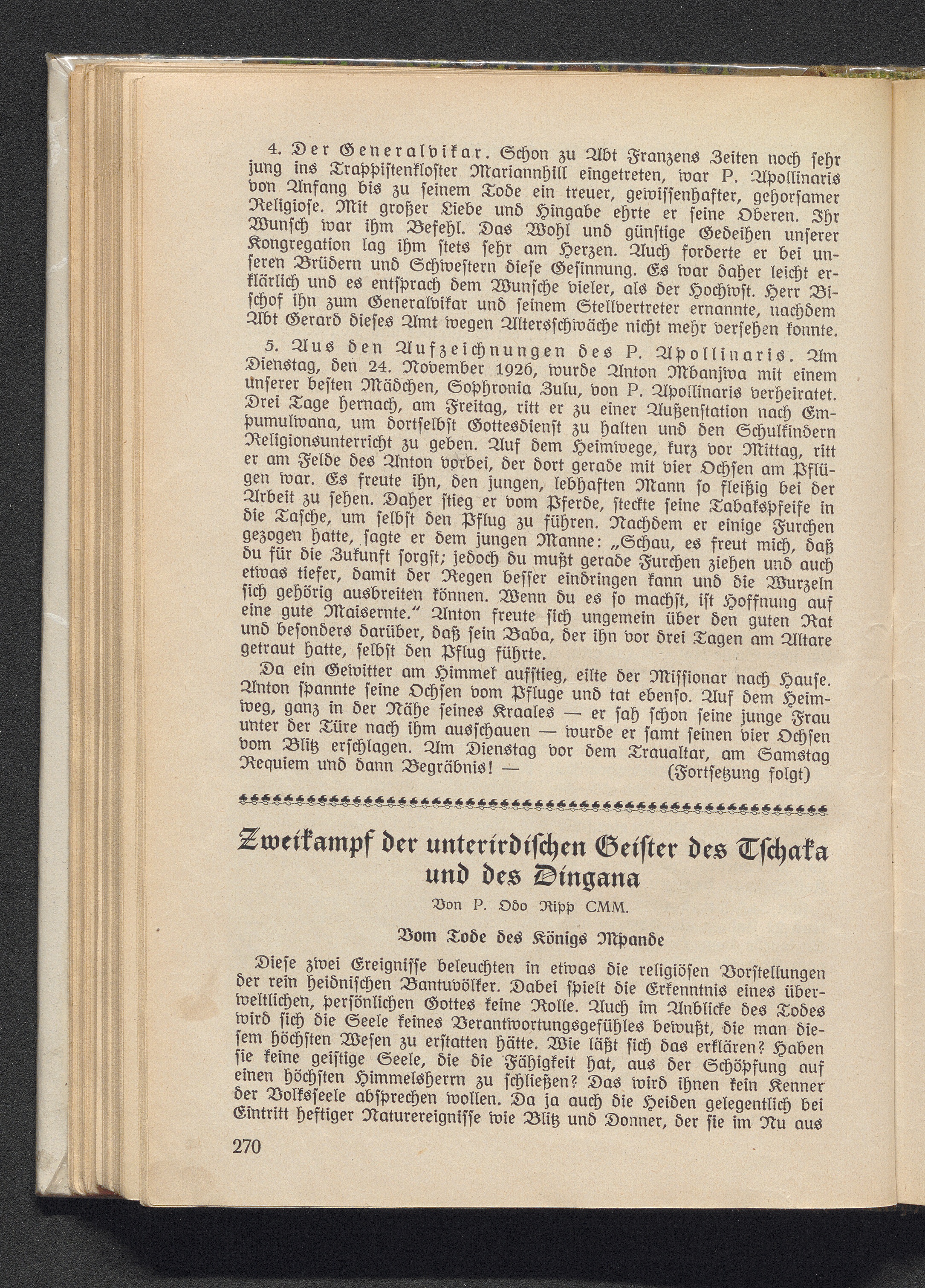 Zweikampf der unterirdischen Geister des Tschaka und des Dingana.
