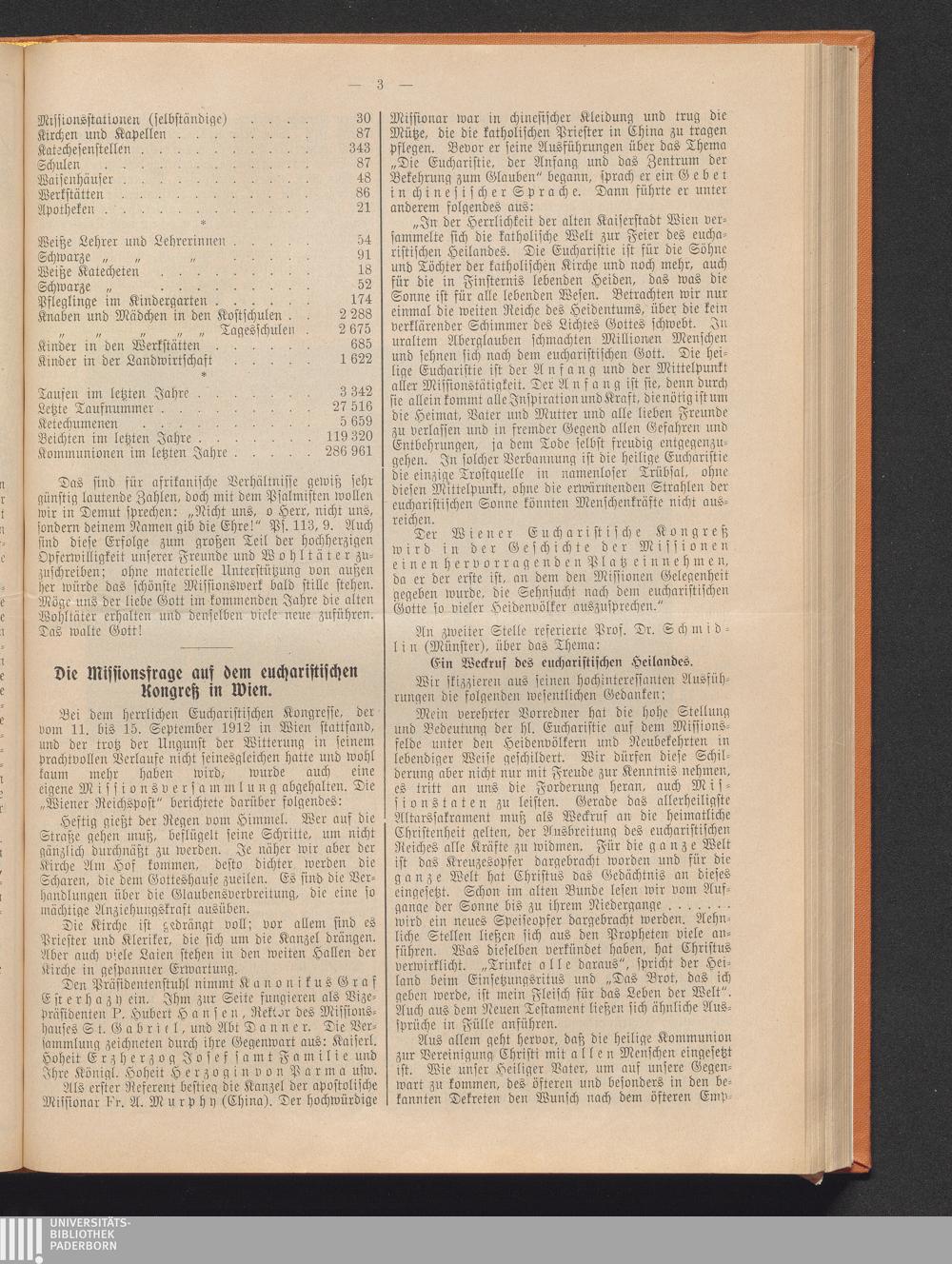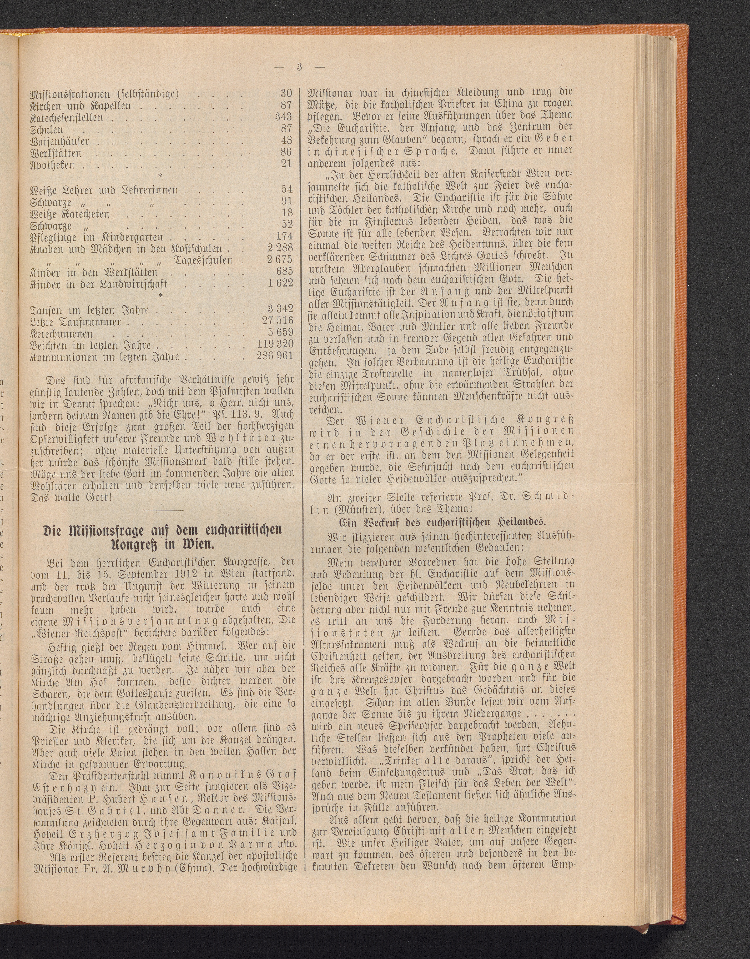 Die Missionsfrage auf dem eucharistischen Kongreß in Wien.