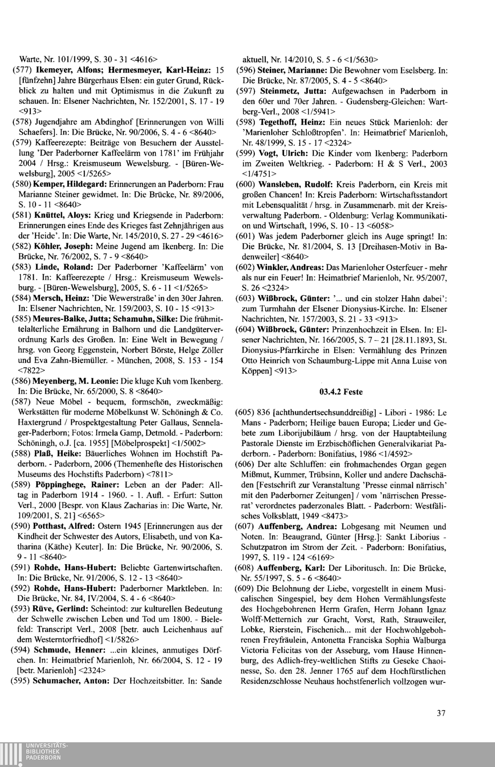 Paderborner Bibliographie ...