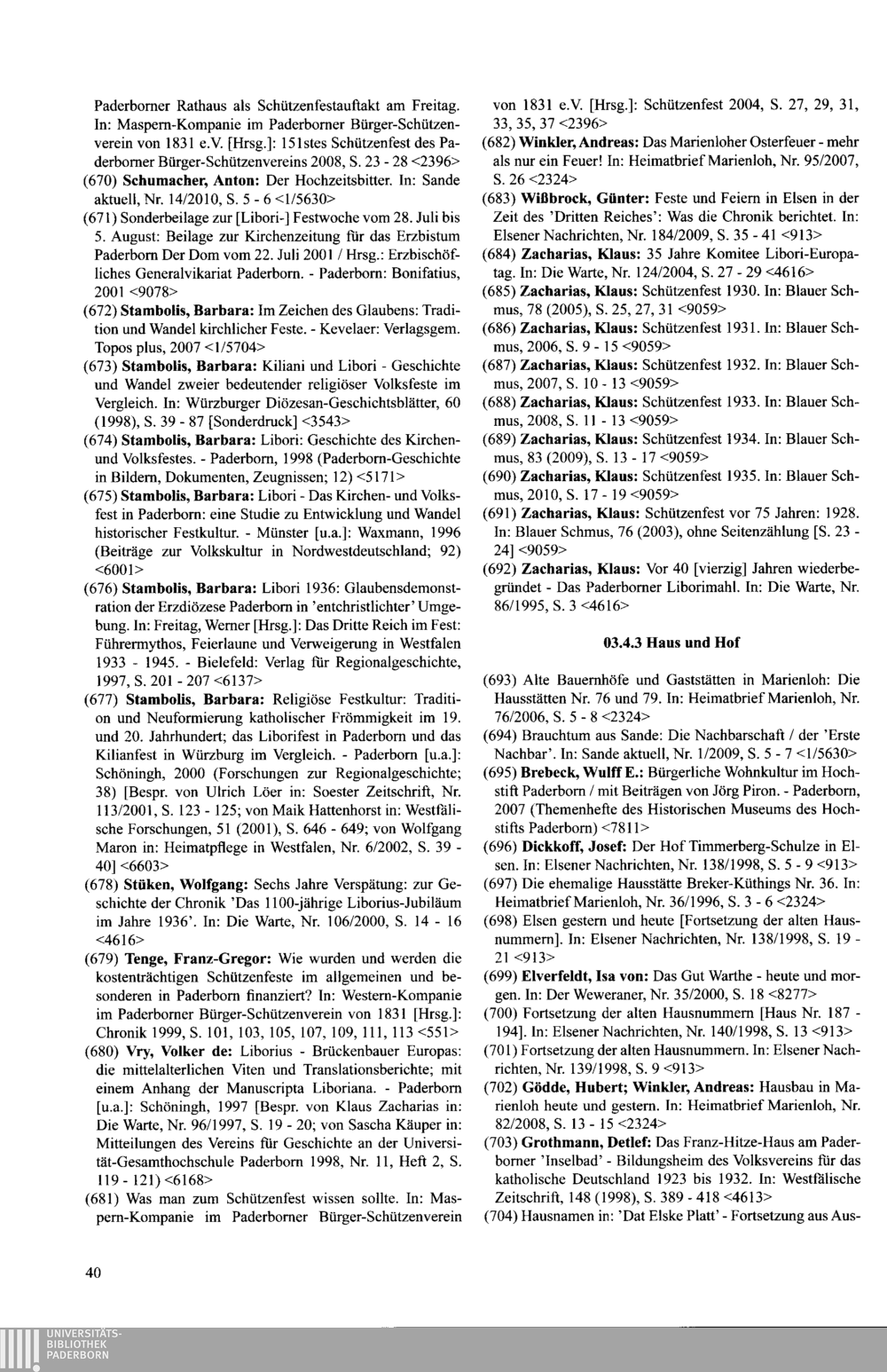 Paderborner Bibliographie ...