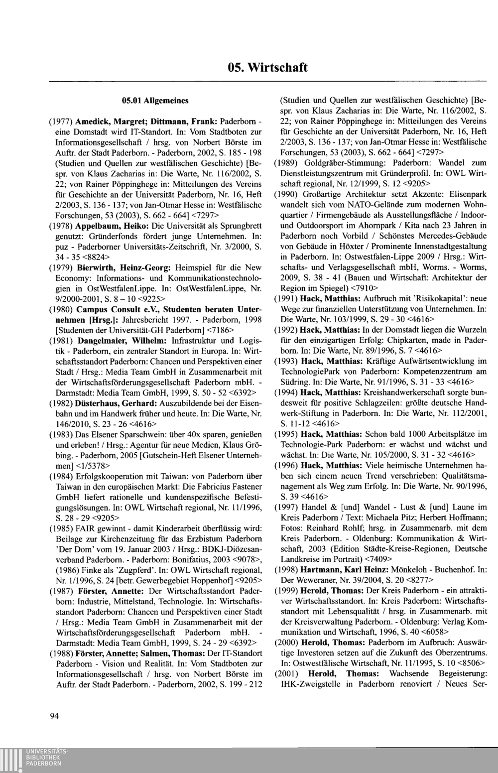 Paderborner Bibliographie ...