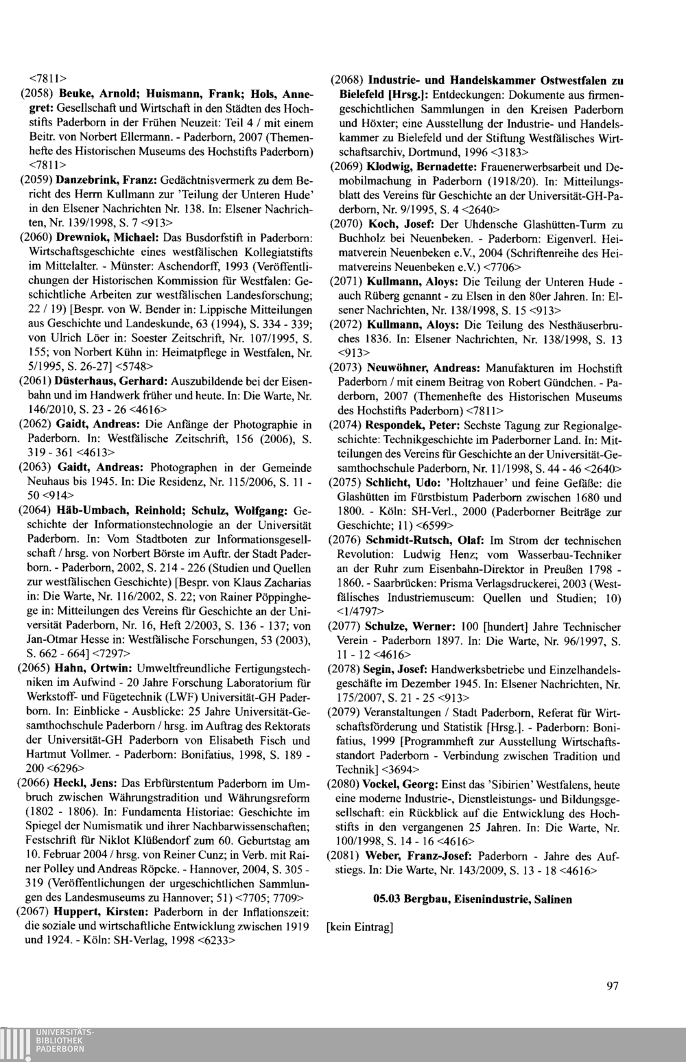 Paderborner Bibliographie ...