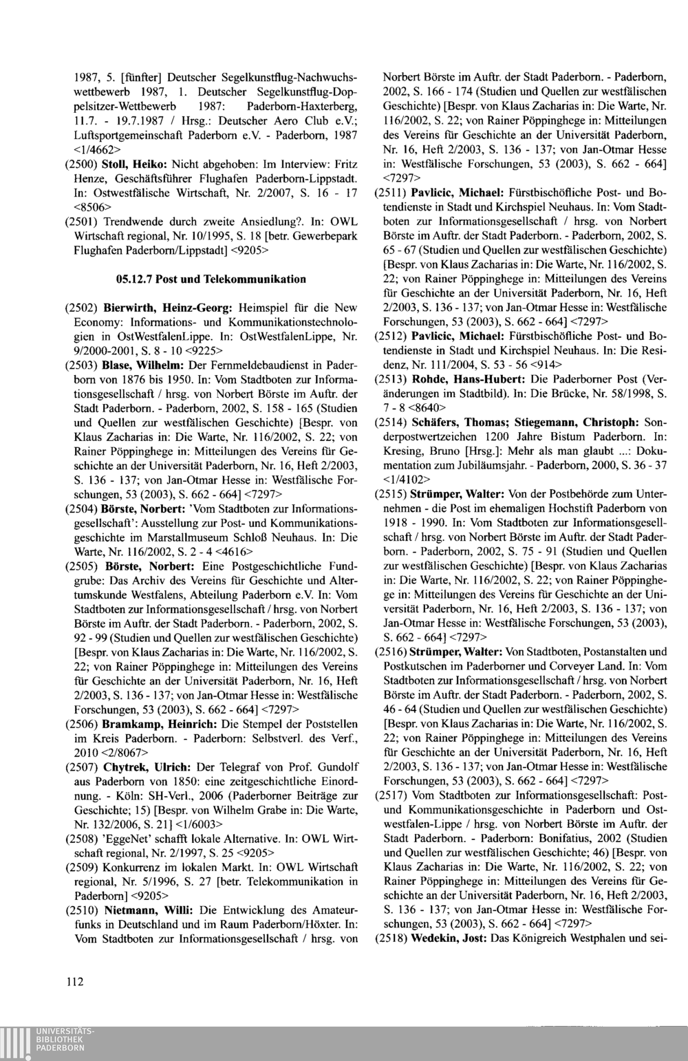 Paderborner Bibliographie ...