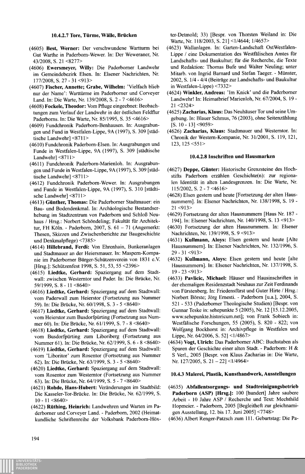 Paderborner Bibliographie ...