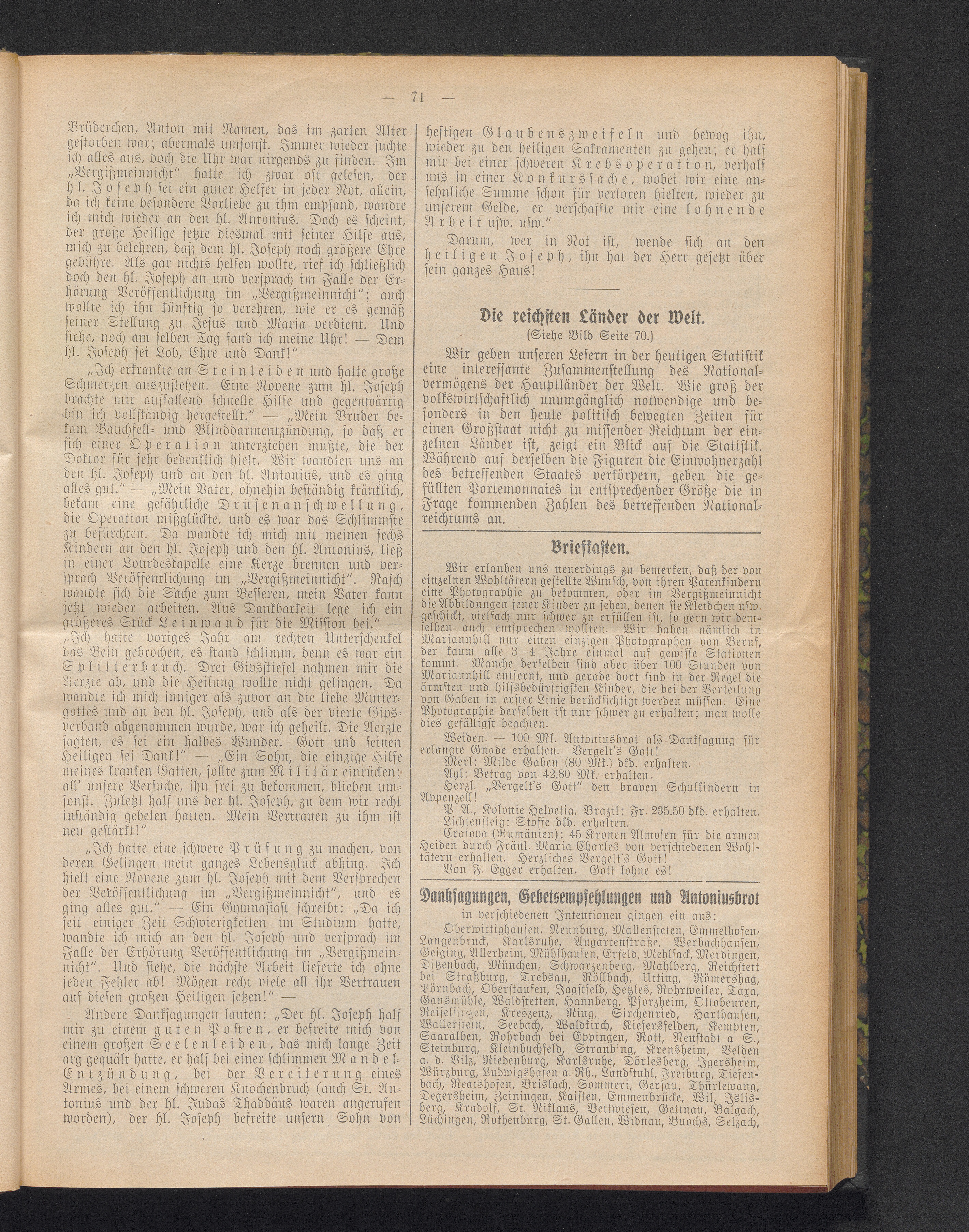 Danksagungen, Gebetsempfehlungen und Antoniusbrot.