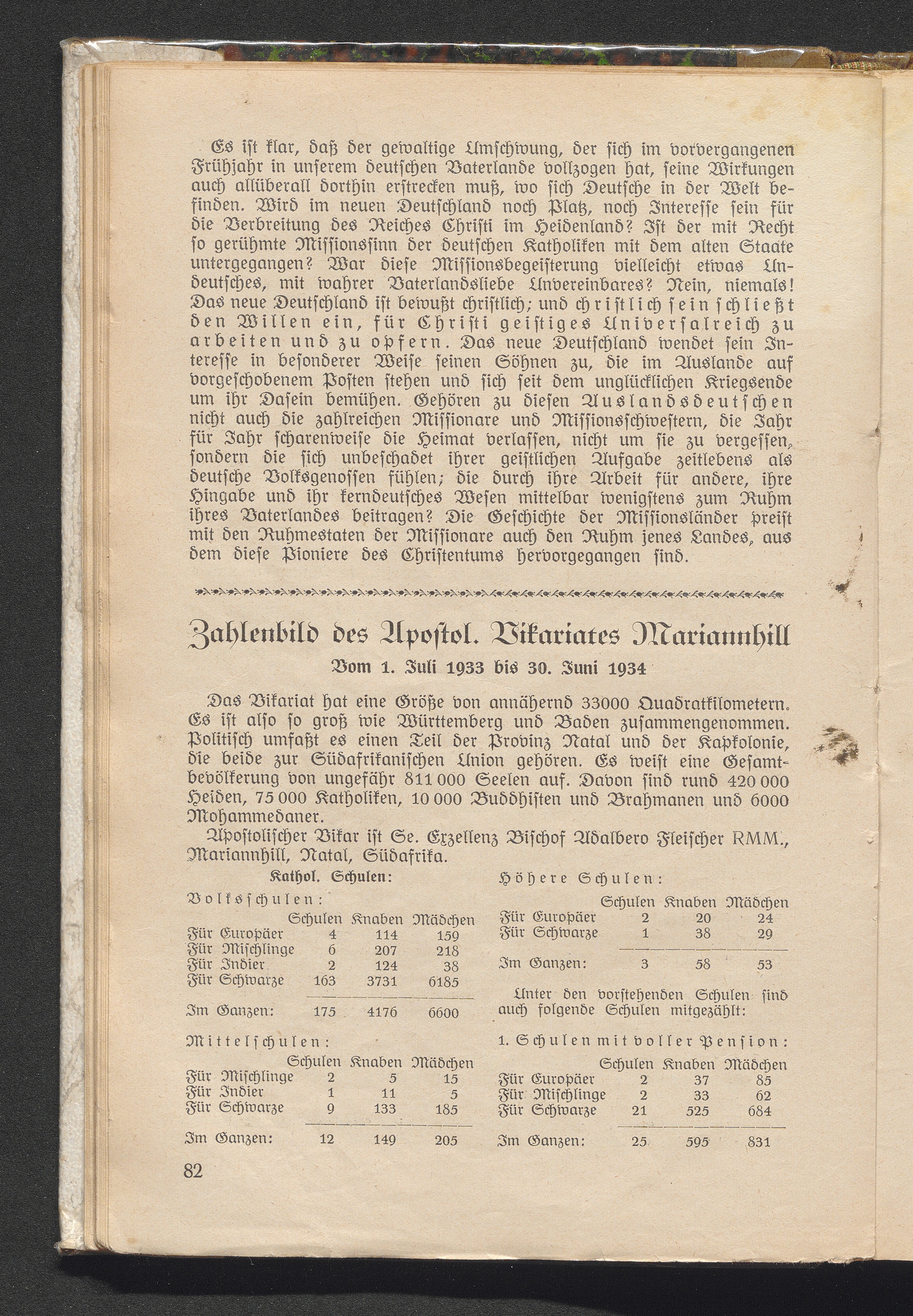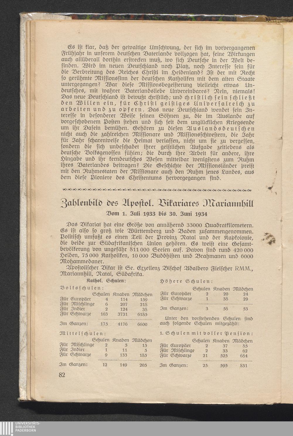 Zahlenbild des Apostel. Vikariates Mariannhill.
