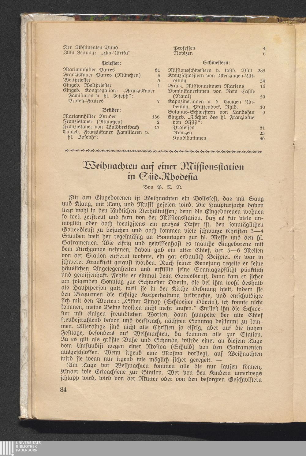 Weihnachten auf einer Missionsstation in Süd-Rhodesia.