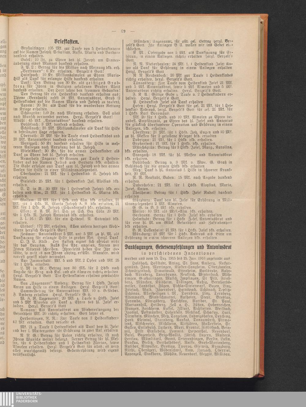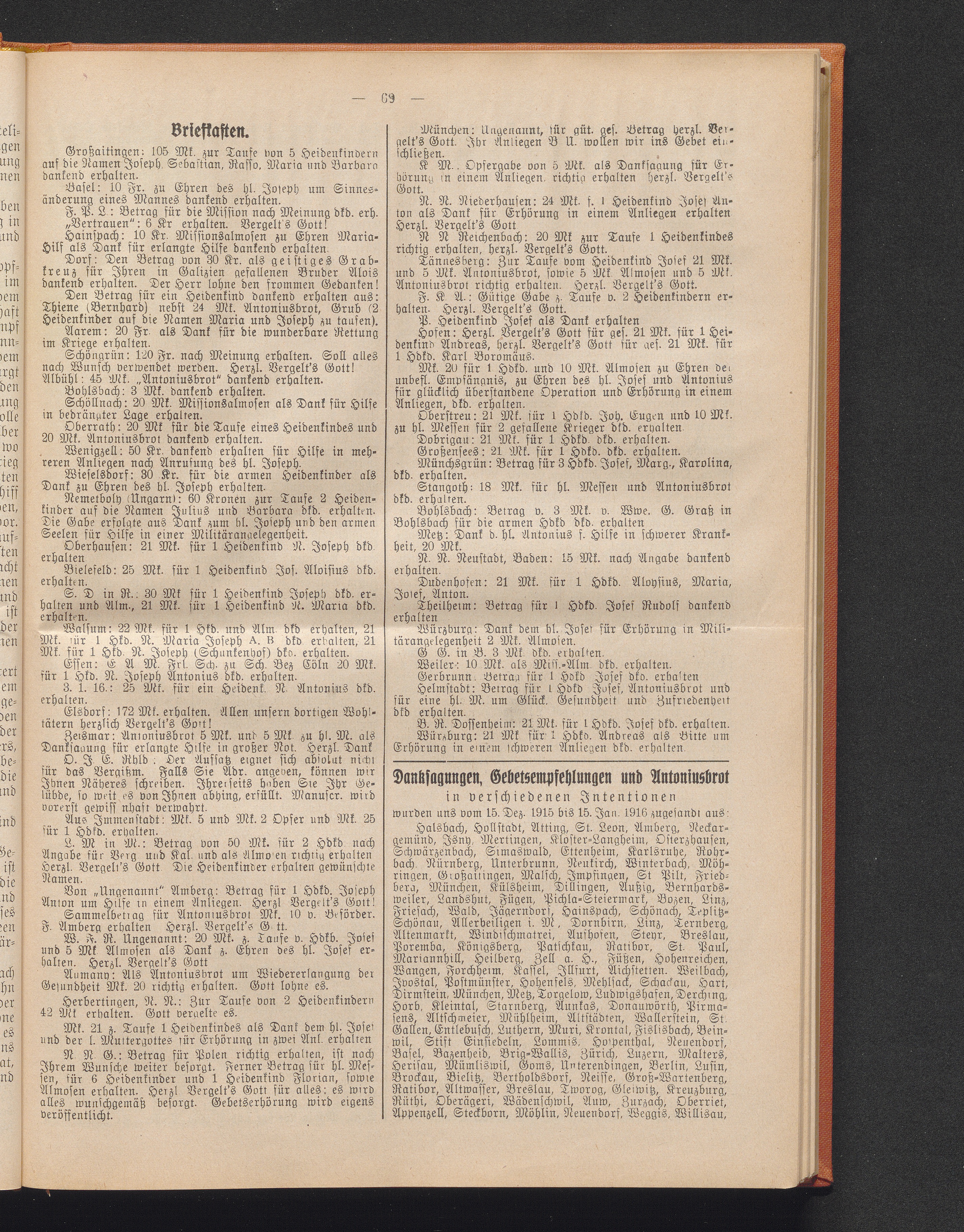 Danksagungen, Gebetsempfehlungen und Antoniusbrot.