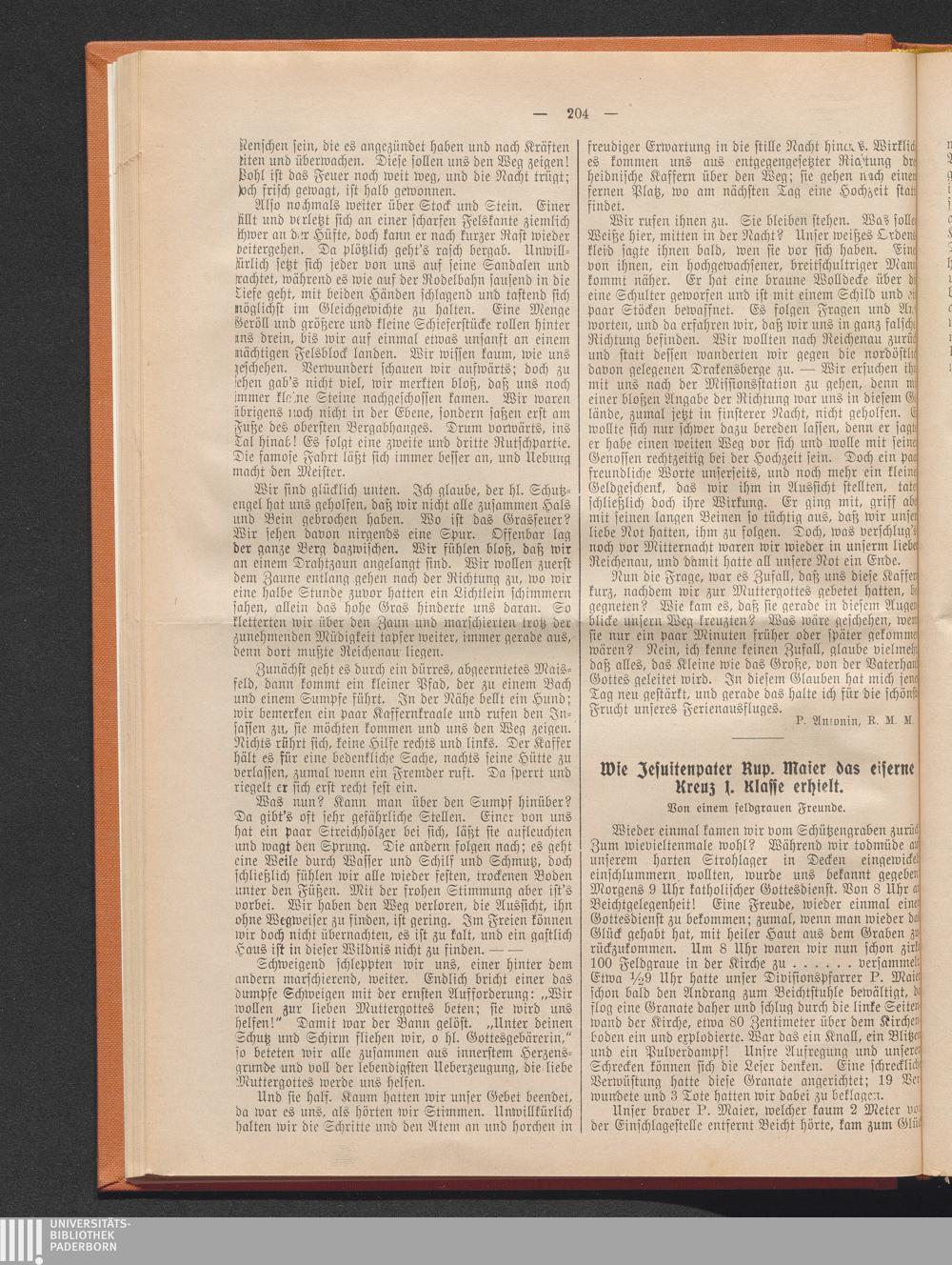 Wie Jesuitenpater Rup. Maier das eiserne Kreuz 1. Klasse erhielt.
