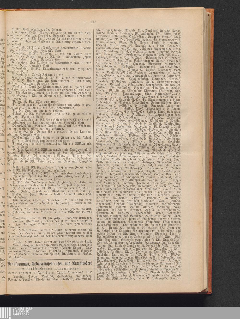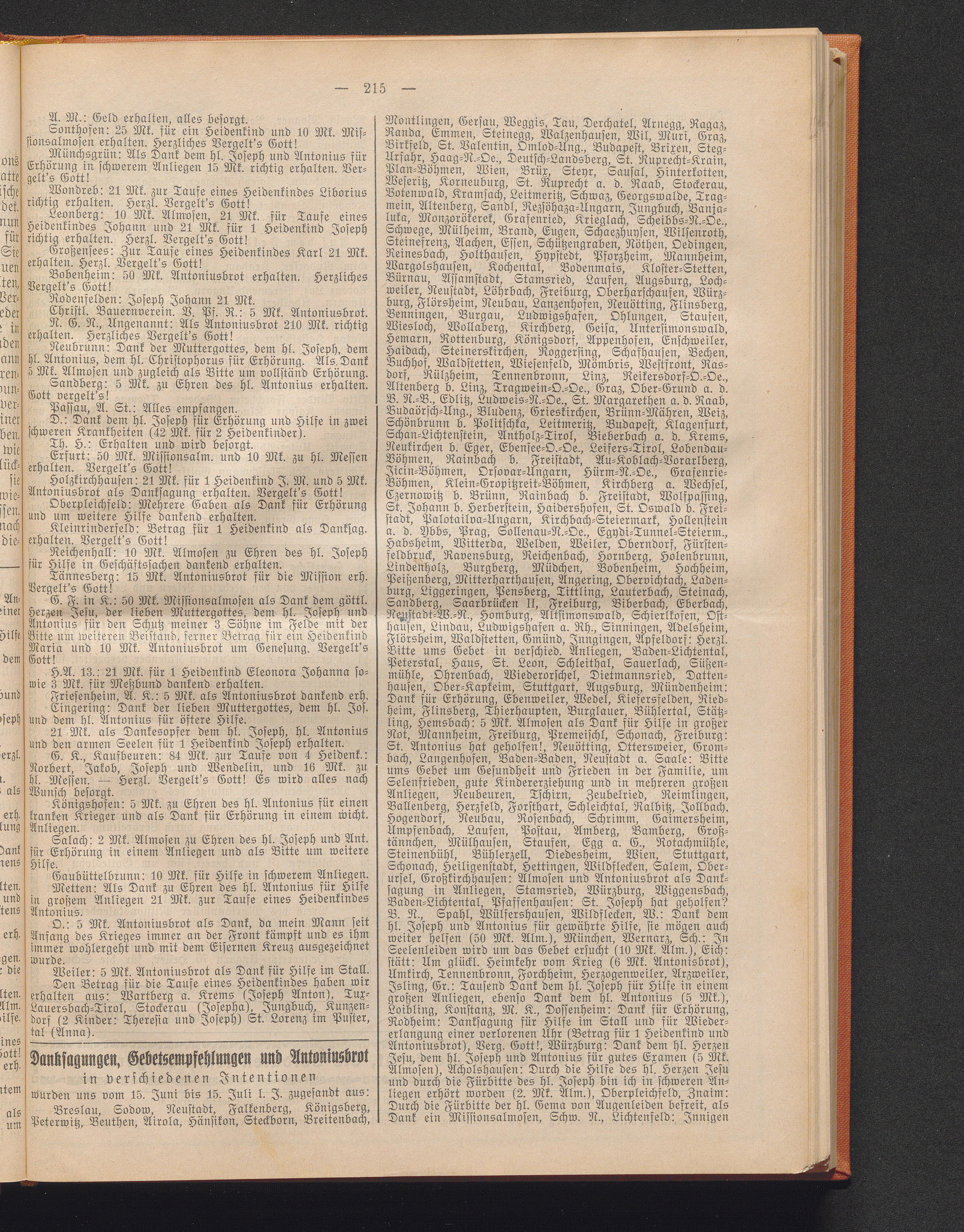 Danksagungen, Gebetsempfehlungen und Antoniusbrot.