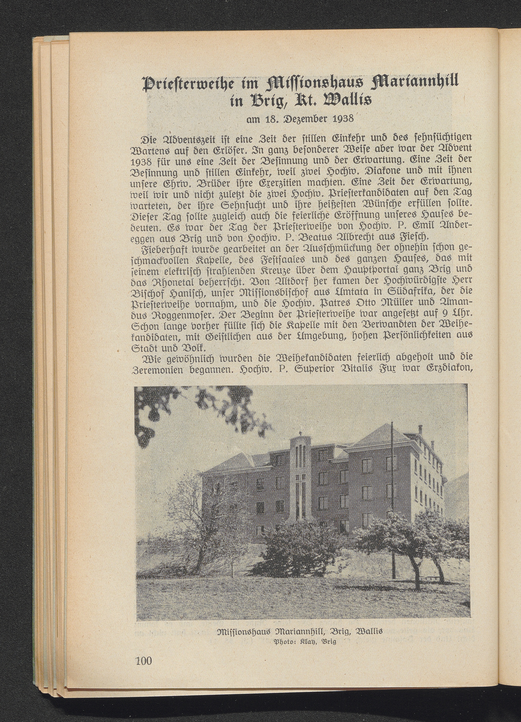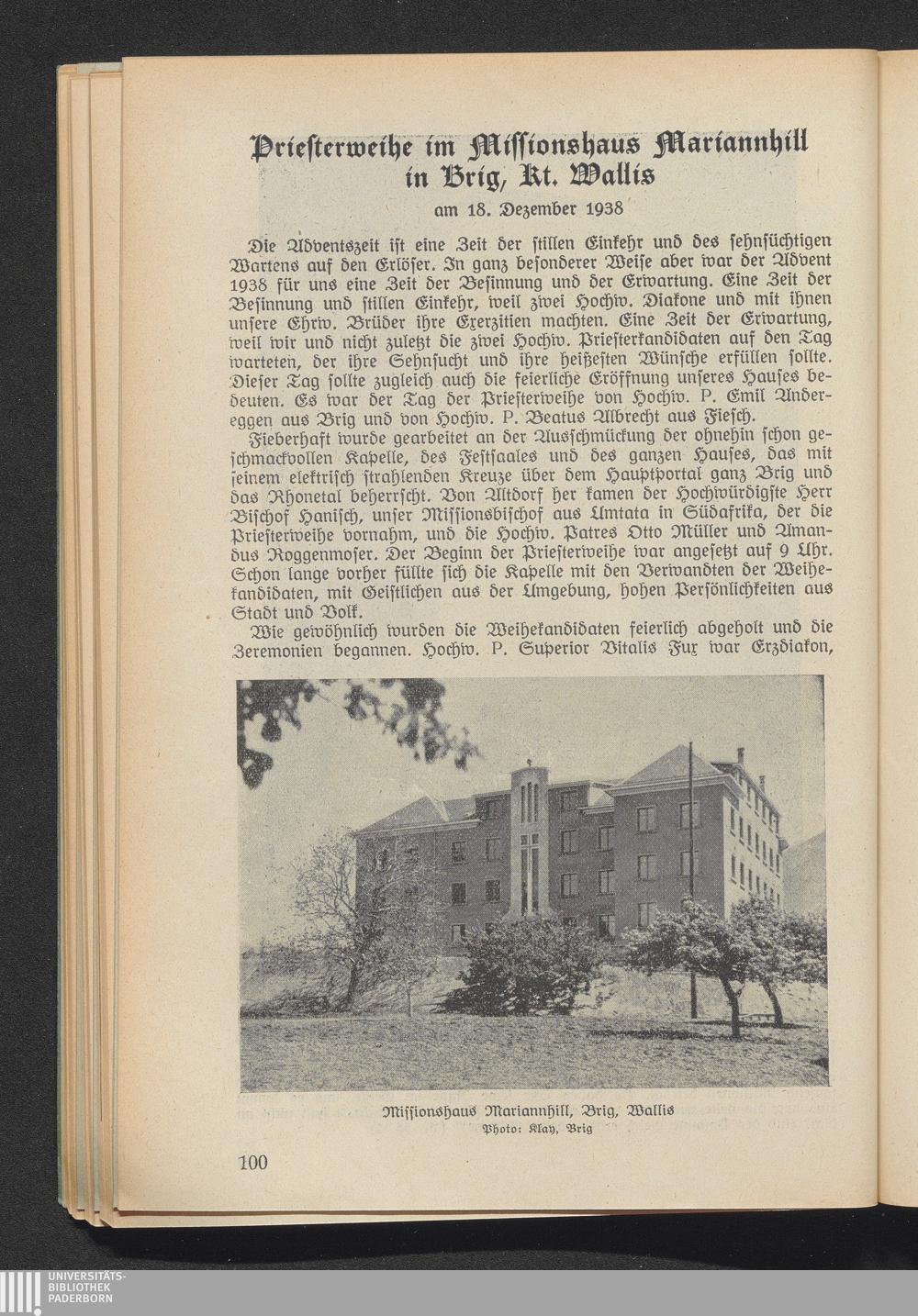 Priesterweihe im Missionshaus Marannhill in Brig, kt. Wallis.