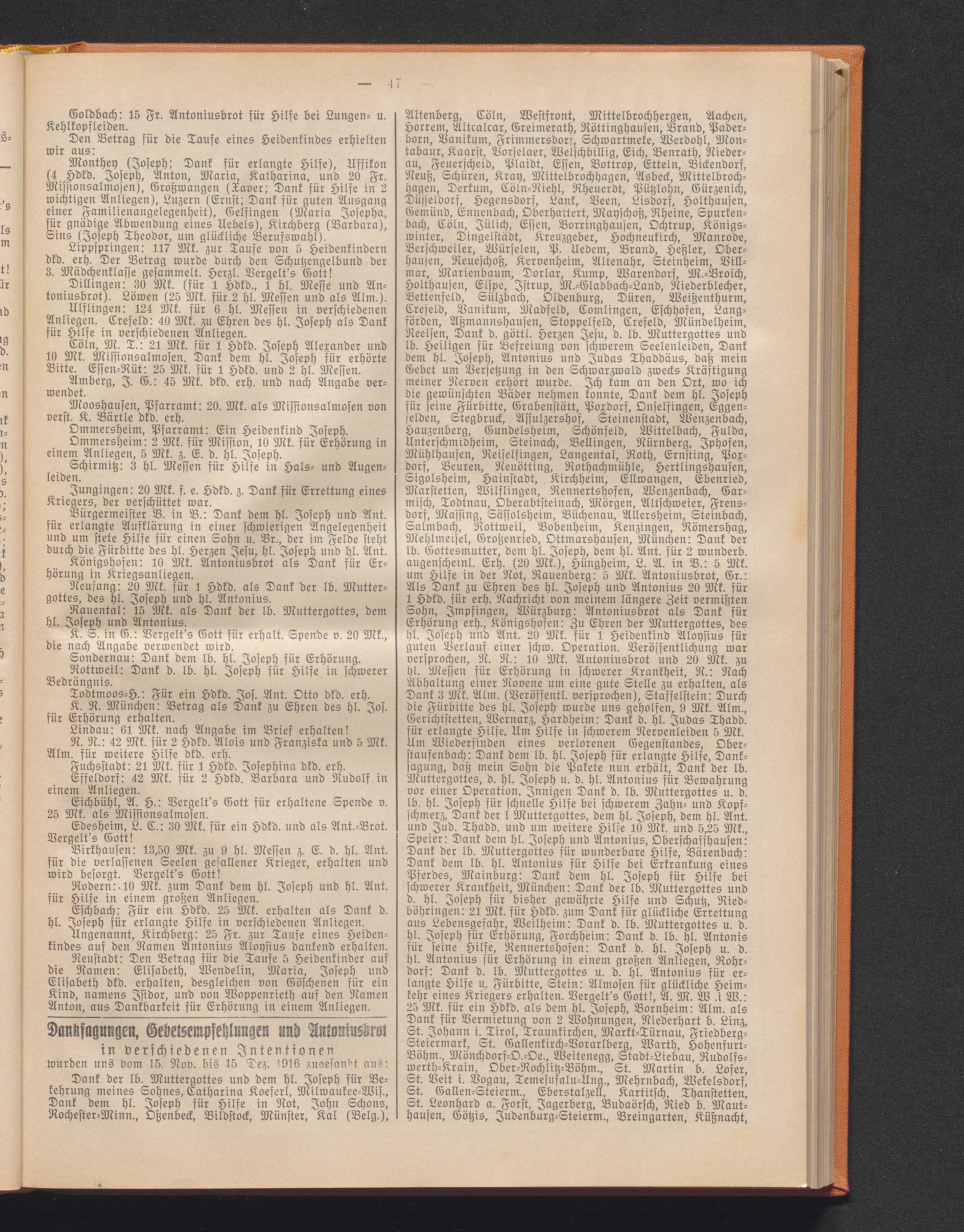 Danksagungen, Gebetsempfehlungen und Antoniusbrot