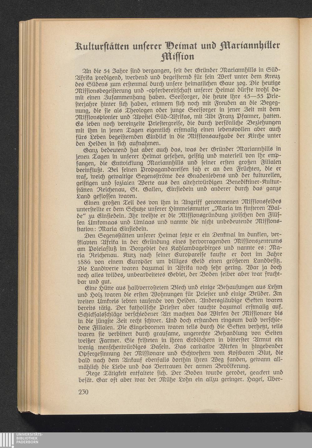 Kulturstätten unserer Heimat und Mariannhiller Mission.