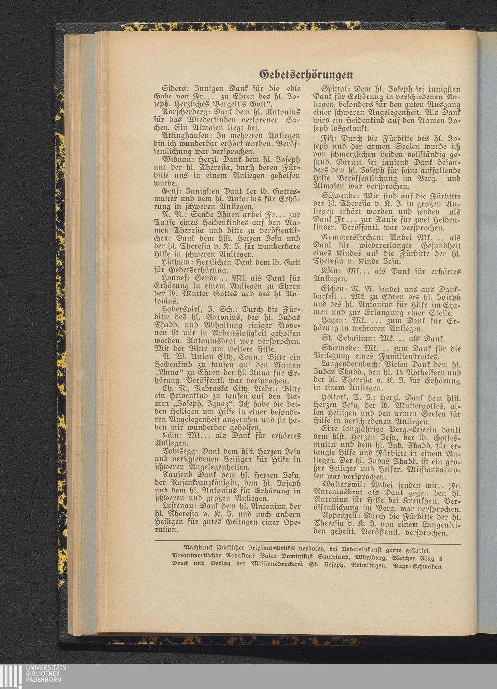 Gebetserhöhrungen.