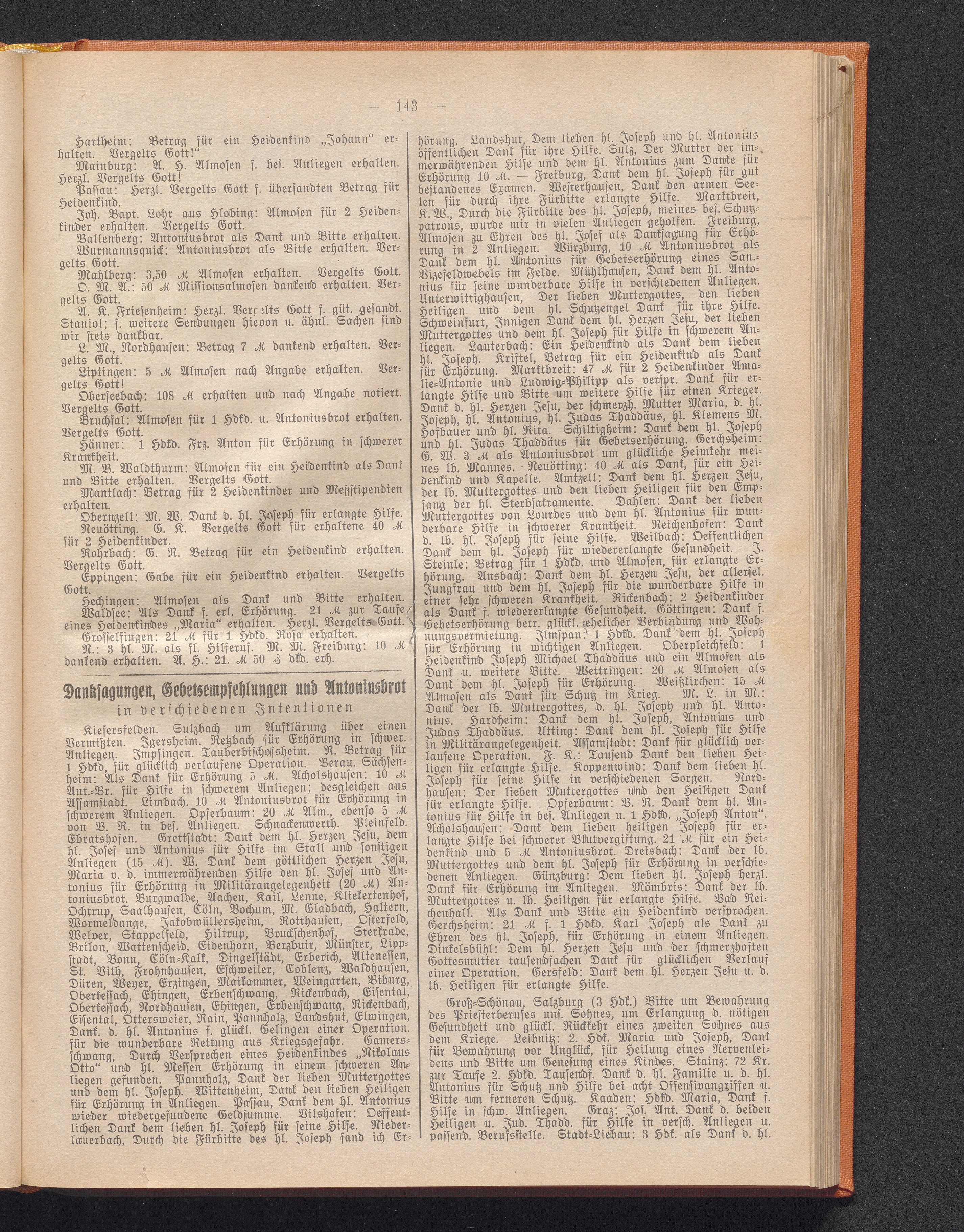 Danksagungen, Gebetsempfehlungen und Antoniusbrot