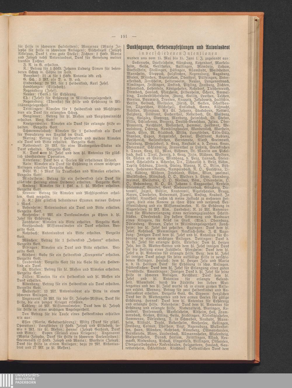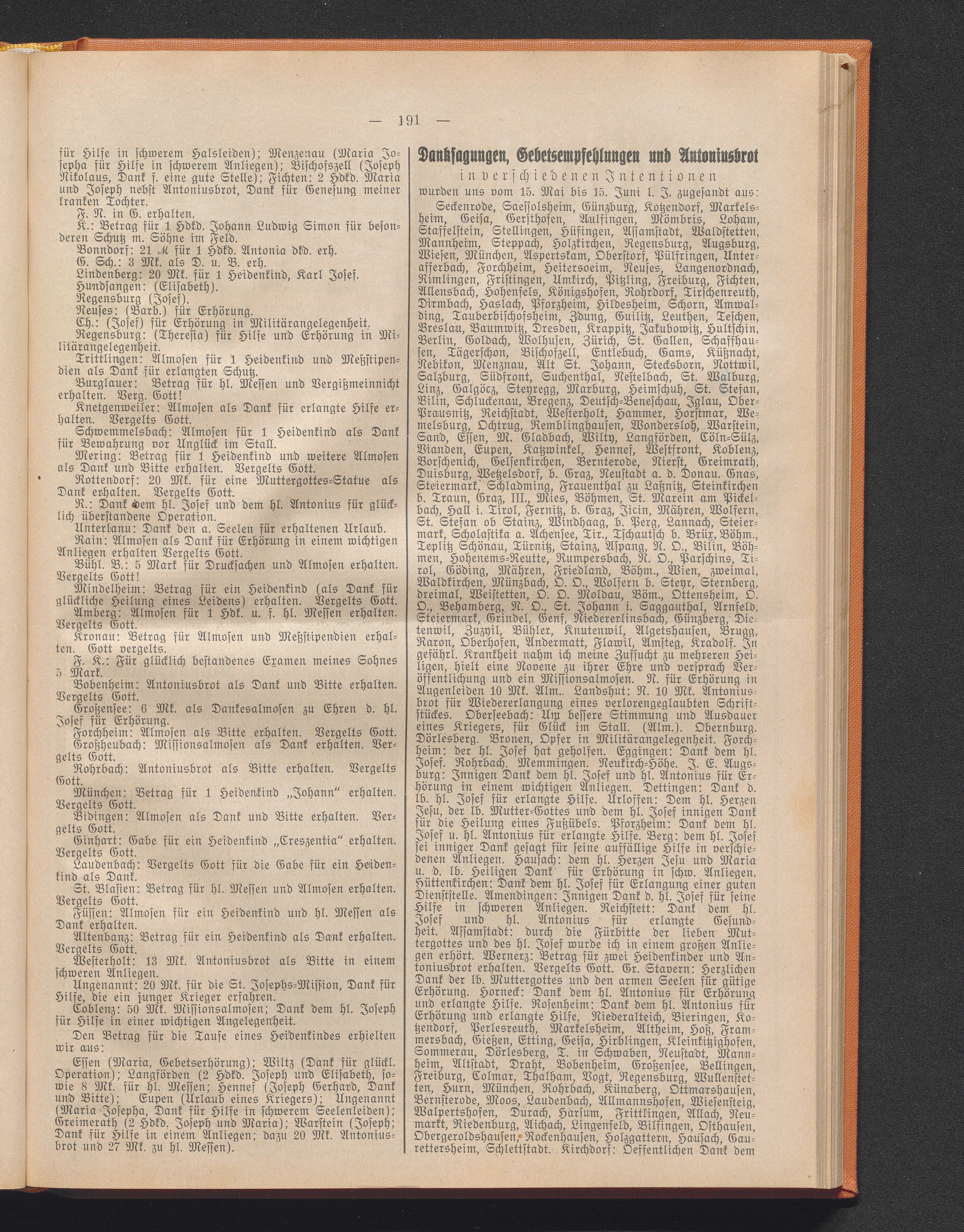 Danksagungen, Gebetsempfehlungen und Antoniusbrot