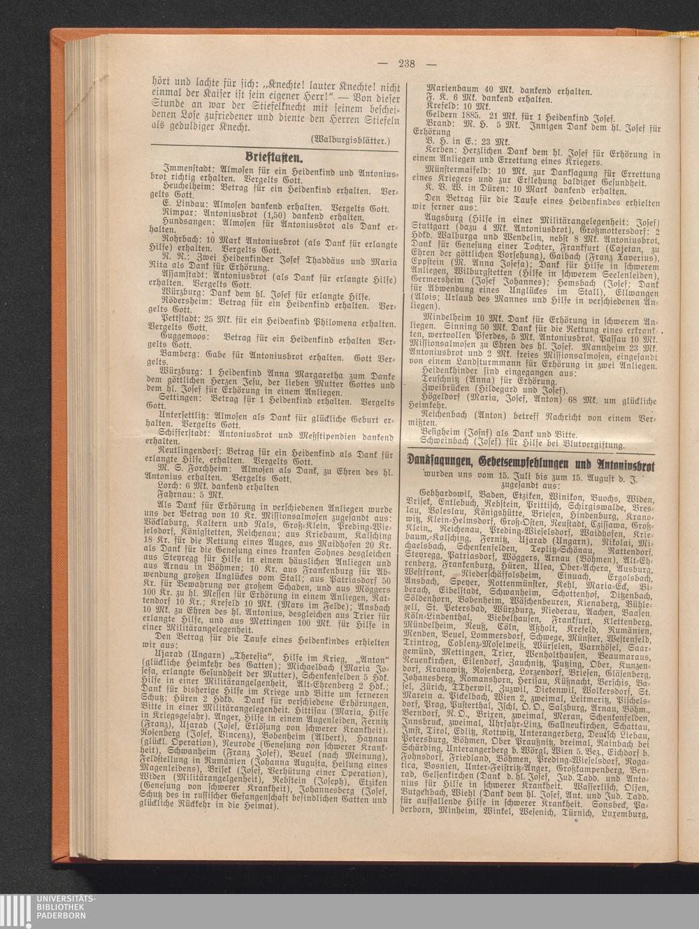 Danksagungen, Gebetsempfehlungen und Antoniusbrot