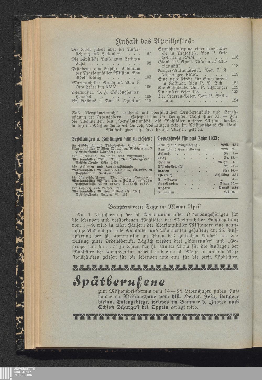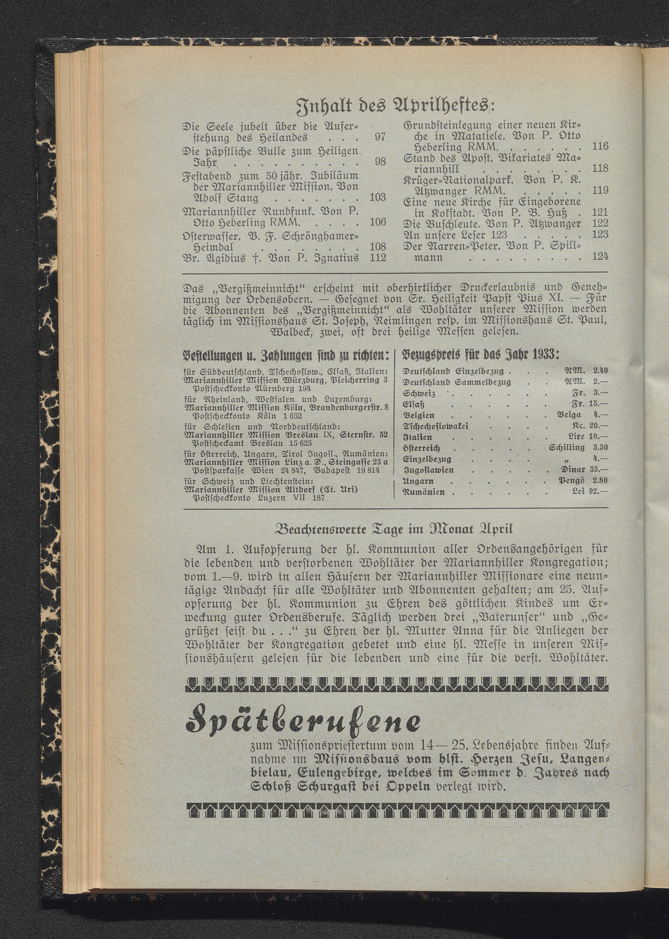 Inhalt des Aprilheftes