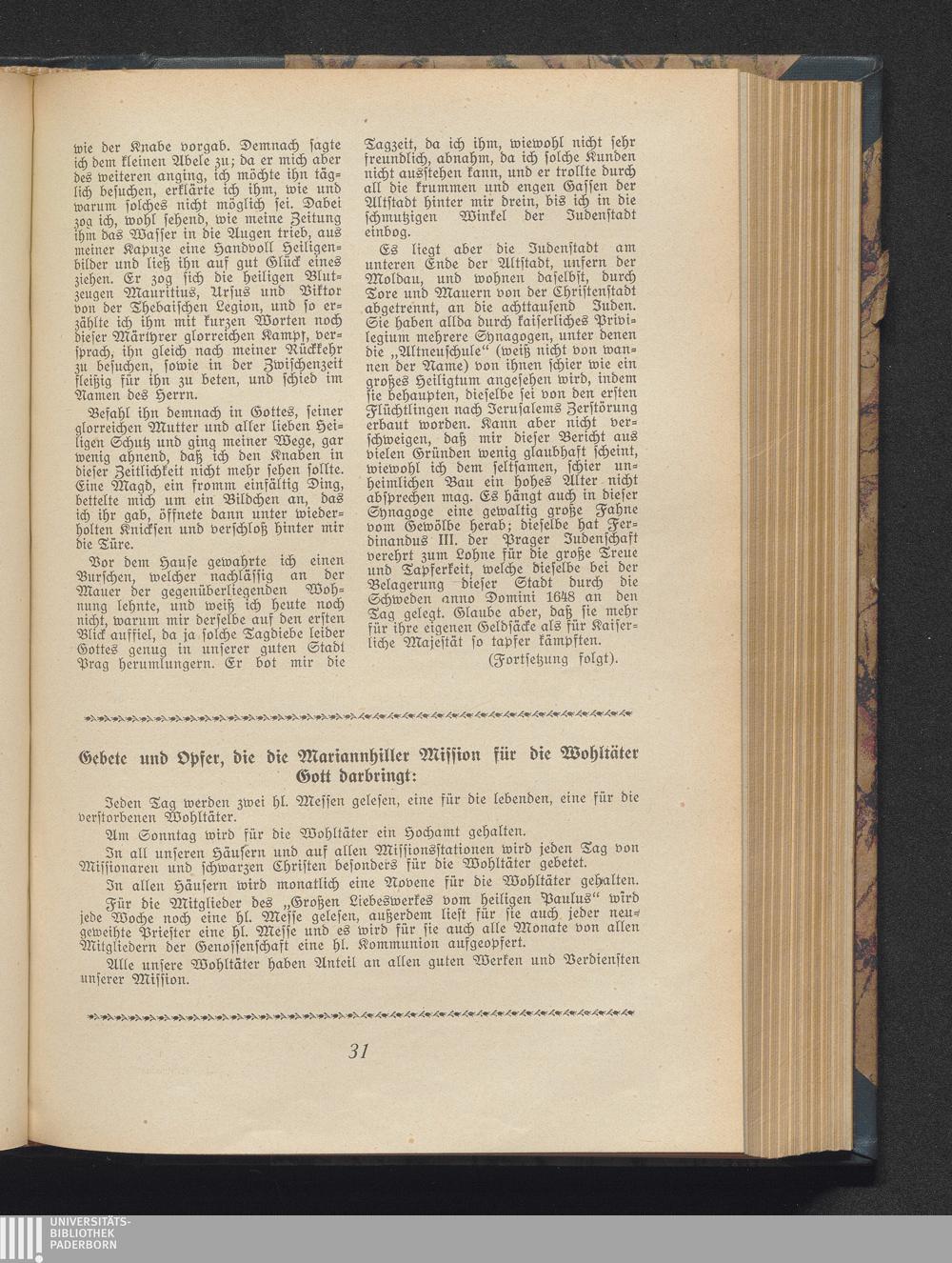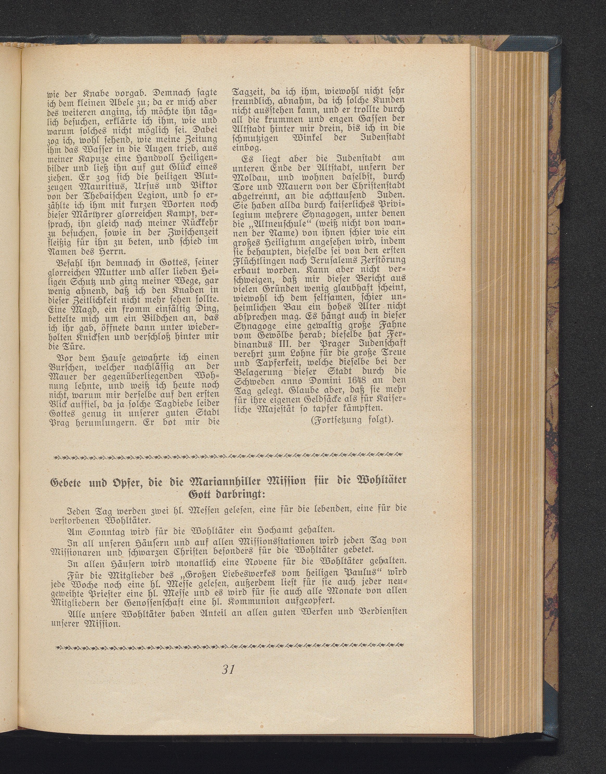 Gebete und Opfer, die die Mariannhiller Mission für die Wohtäter Gott darbringt: