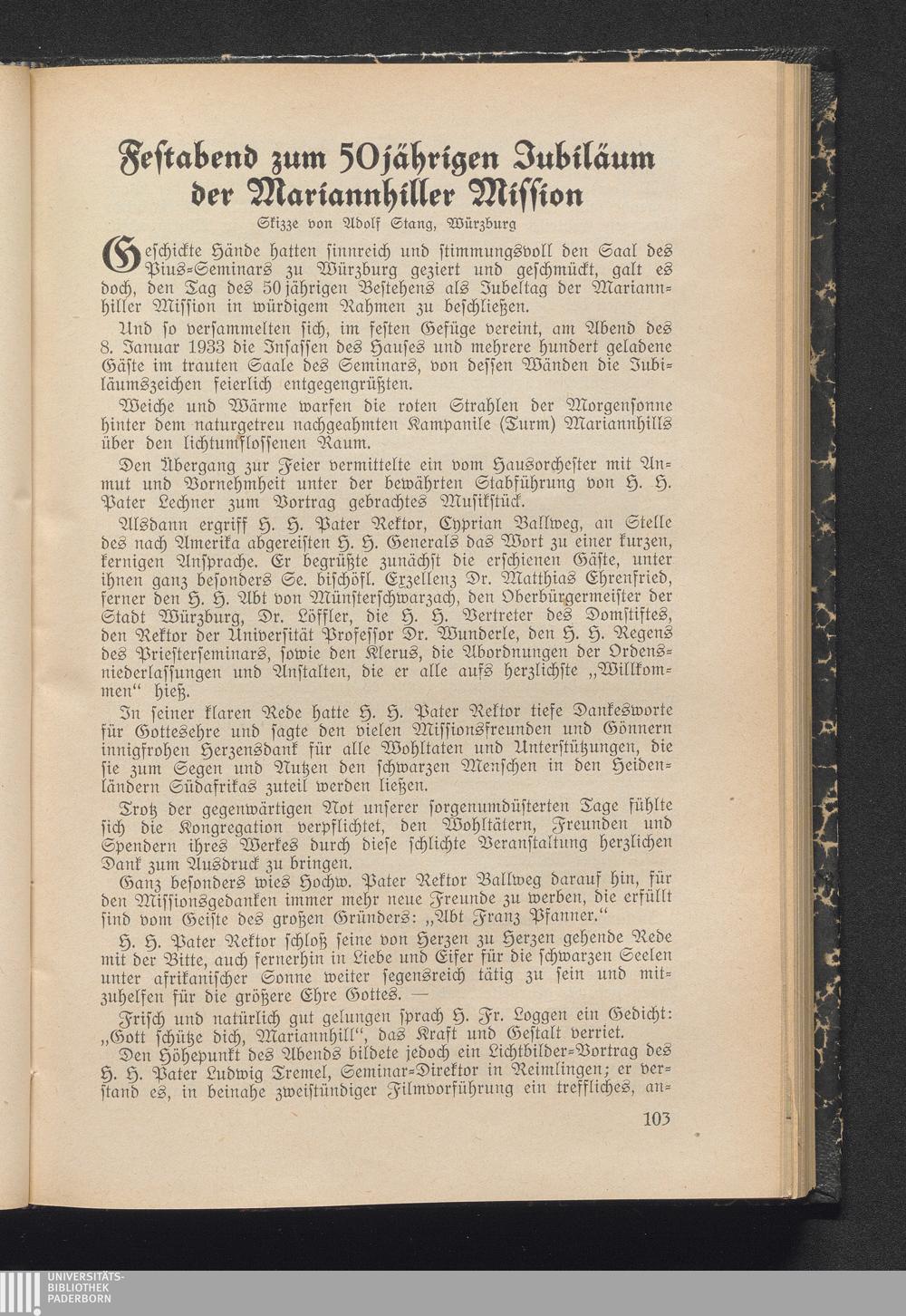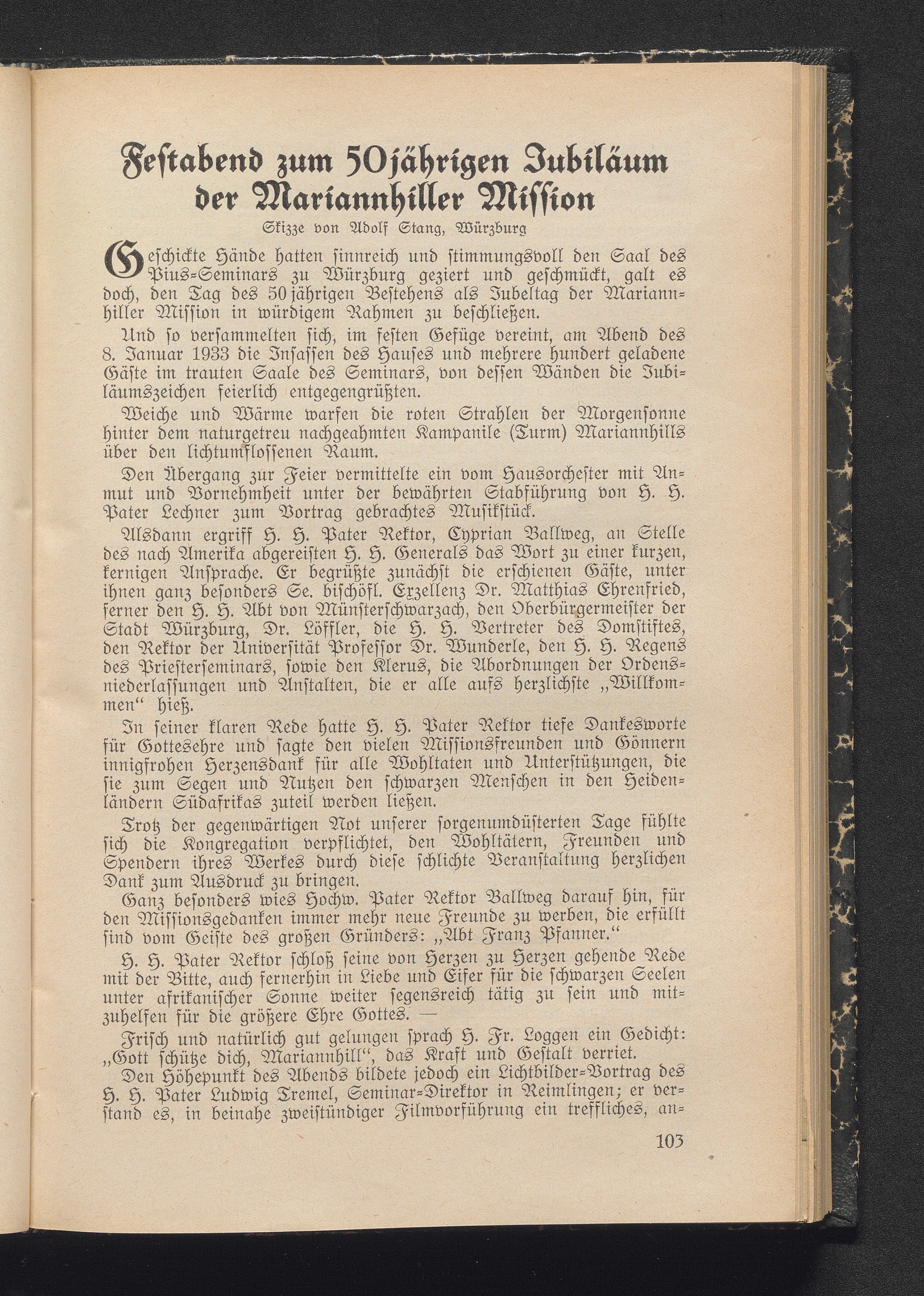 Festabend zum 50jährigen Jubiläum der Mariannhiller Mission
