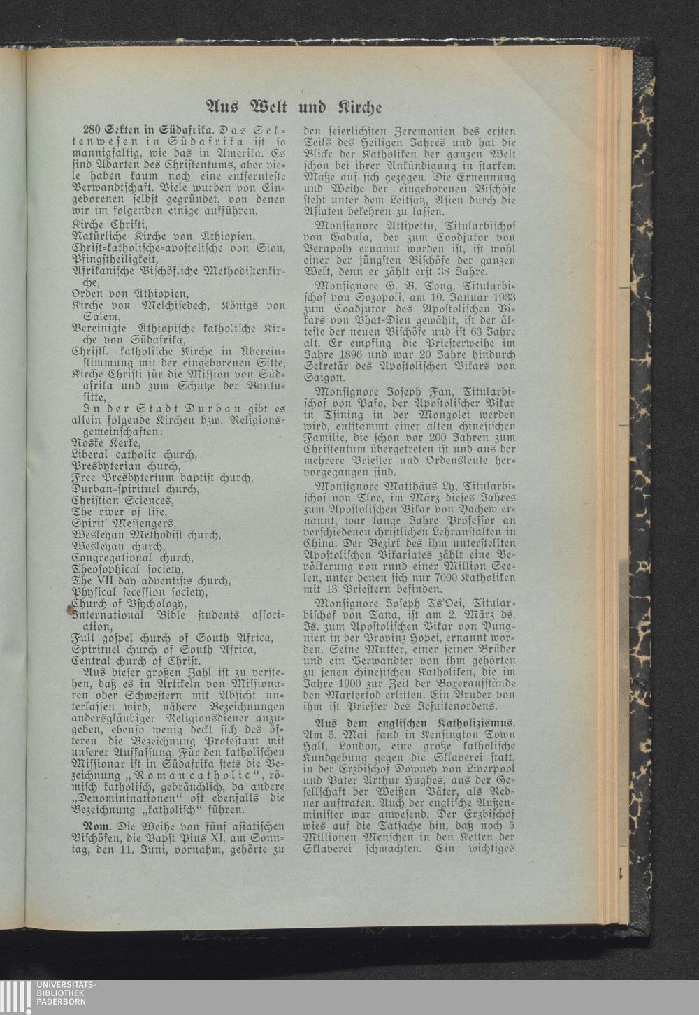 Aus Welt und Kirche