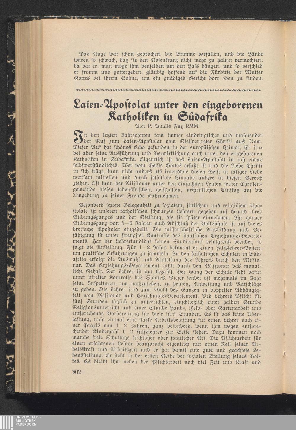Laien-Apostolat unter den eingeborenen Katholiken in Südafrika.